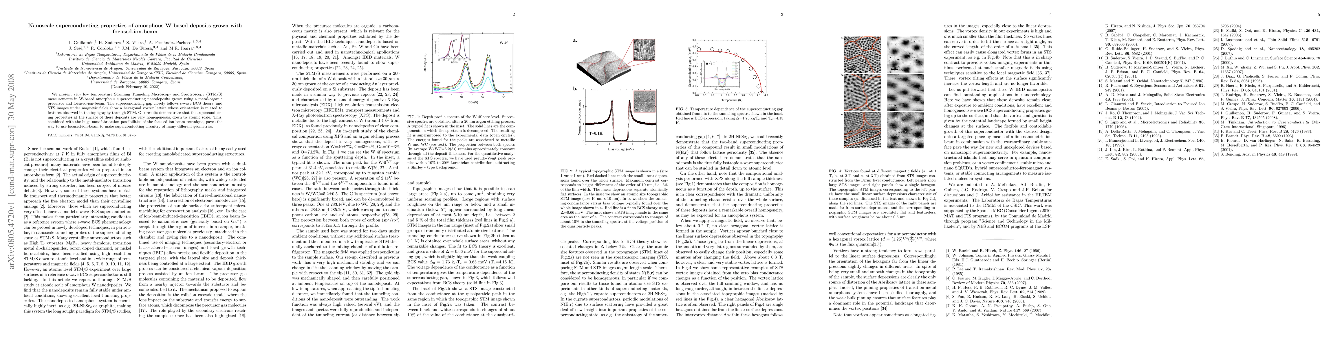 This study investigates the nanoscale superconducting properties of amorphous W-based deposits created via focused-ion-beam, revealing homogeneous s-wave BCS theory-compliant behavior and a hexagonal vortex lattice under magnetic fields. The findings suggest potential for advanced superconducting circuitry fabrication using this technique.