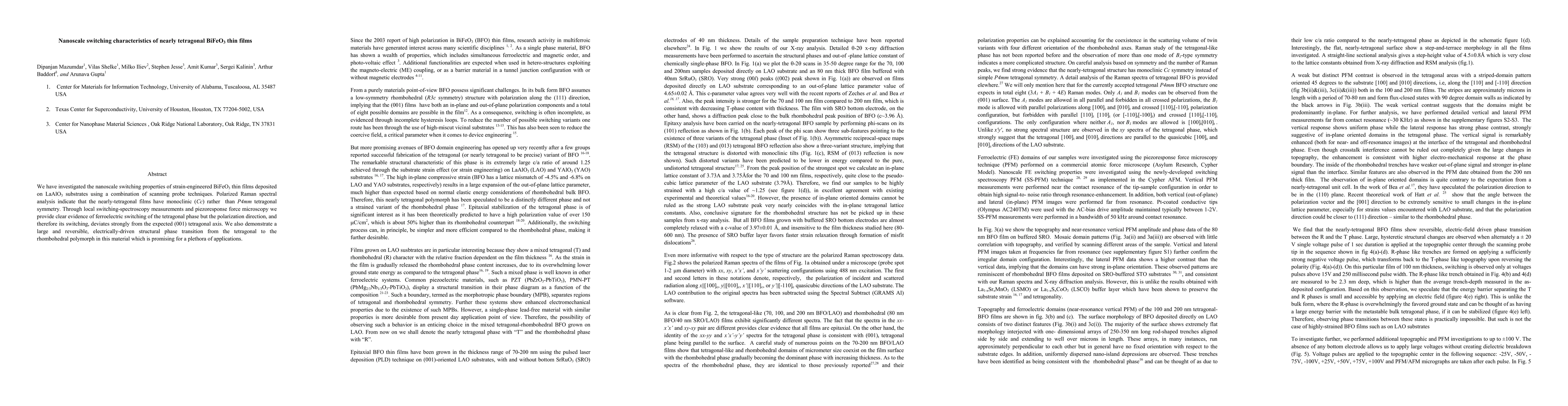 This study investigates the nanoscale ferroelectric switching behavior of strain-engineered nearly tetragonal BiFeO3 thin films, revealing monoclinic symmetry and demonstrating a large, reversible structural phase transition triggered by electric fields, which holds potential for various applications.