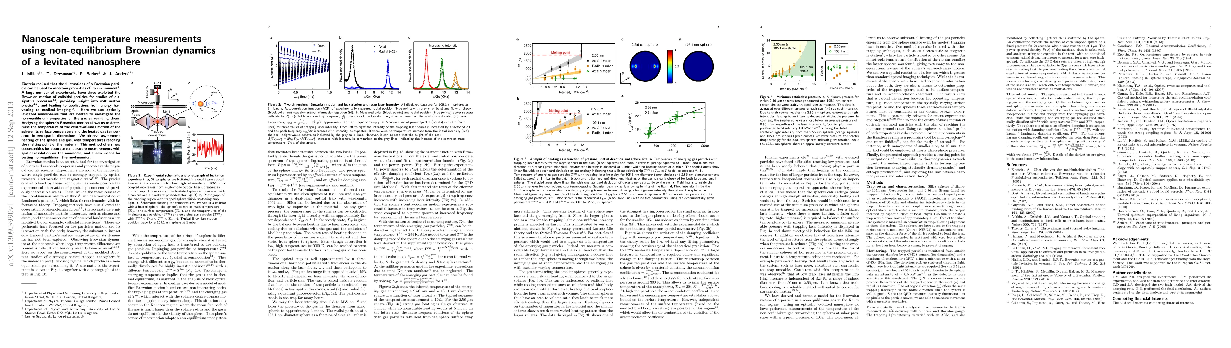 This paper investigates nanoscale temperature measurements using non-equilibrium Brownian dynamics of an optically levitated nanosphere. The study reveals asymmetric heating and provides insights into the gas surrounding the sphere, offering a new method for precise temperature measurements with nanoscale resolution.