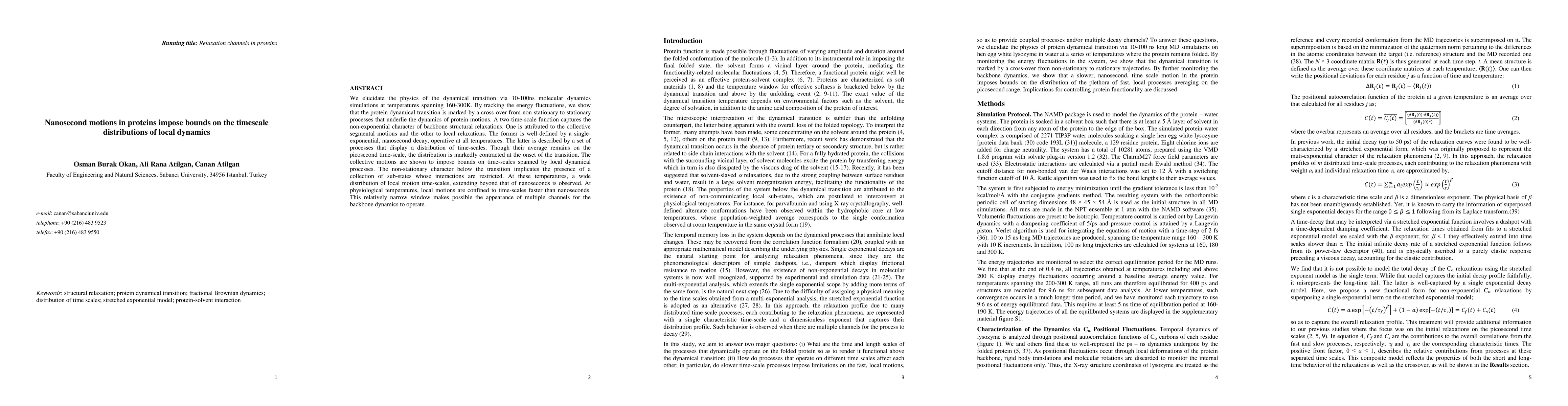 This study reveals that nanosecond collective segmental motions in proteins constrain the time-scale distribution of local dynamics, transitioning from a wide range of picosecond-scale local motions to a more confined set faster than nanoseconds at physiological temperatures. The transition is marked by a shift from piecewise stationary to stationary processes.