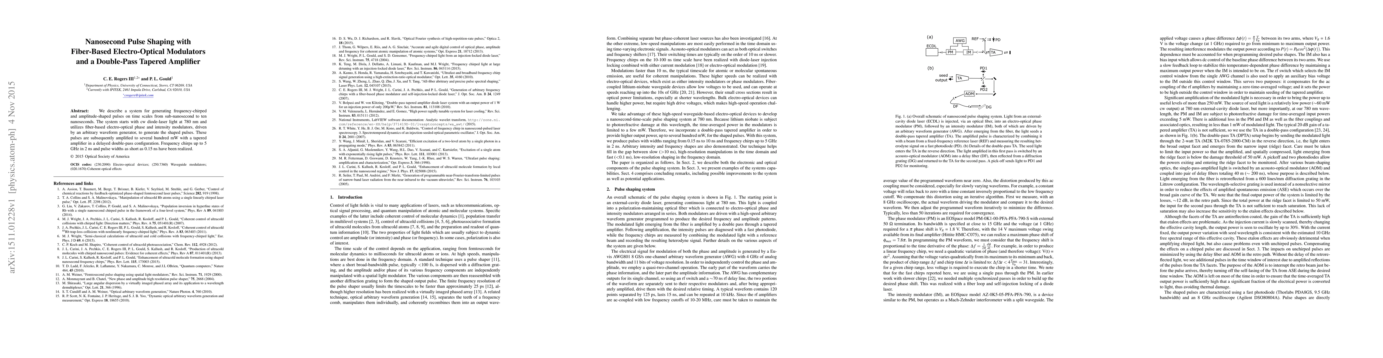 This paper presents a system for generating nanosecond-scale, frequency-chirped and amplitude-shaped laser pulses using fiber-based electro-optical modulators and a double-pass tapered amplifier, achieving chirps up to 5 GHz in 2 ns and pulse widths as short as 0.15 ns.