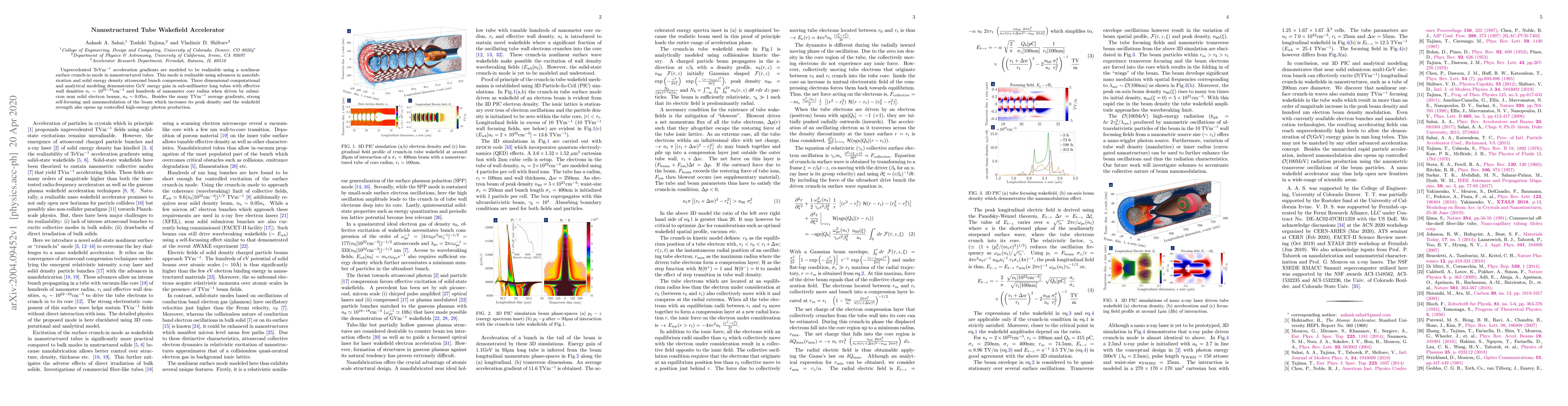 Unprecedented $\rm TeVm^{-1}$ acceleration gradients are modeled to be realizable using a nonlinear surface crunch-in mode in nanostructured tubes. This mode is realizable using advances in nanofabrication and solid energy density attosecond bunch compression. Three dimensional computational and analytical modeling demonstrates GeV energy gain in sub-millimeter long tubes with effective wall densities $n_{\rm t}\sim10^{22-24}\rm cm^{-3}$ and hundreds of nanometer core radius when driven by submicron near solid electron beams, $n_{\rm b}\sim0.05n_{\rm t}$. Besides the many $\rm TVm^{-1}$ average gradients, strong self-focusing and nanomodulation of the beam which increases its peak density and the wakefield strength also opens up controlled high-energy photon production.
