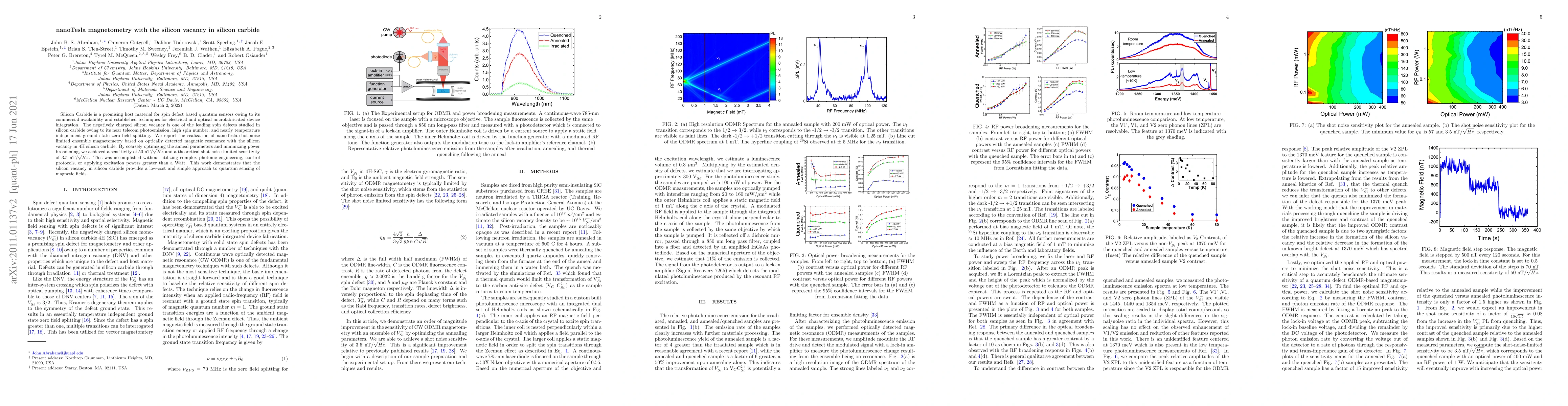 Silicon Carbide is a promising host material for spin defect based quantum sensors owing to its commercial availability and established techniques for electrical and optical microfabricated device integration. The negatively charged silicon vacancy is one of the leading spin defects studied in silicon carbide owing to its near telecom photoemission, high spin number, and nearly temperature independent ground state zero field splitting. We report the realization of nanoTesla shot-noise limited ensemble magnetometry based on optically detected magnetic resonance with the silicon vacancy in 4H silicon carbide. By coarsely optimizing the anneal parameters and minimizing power broadening, we achieved a sensitivity of 3.5 nT/$\sqrt{Hz}$. This was accomplished without utilizing complex photonic engineering, control protocols, or applying excitation powers greater than a Watt. This work demonstrates that the silicon vacancy in silicon carbide provides a low-cost and simple approach to quantum sensing of magnetic fields.