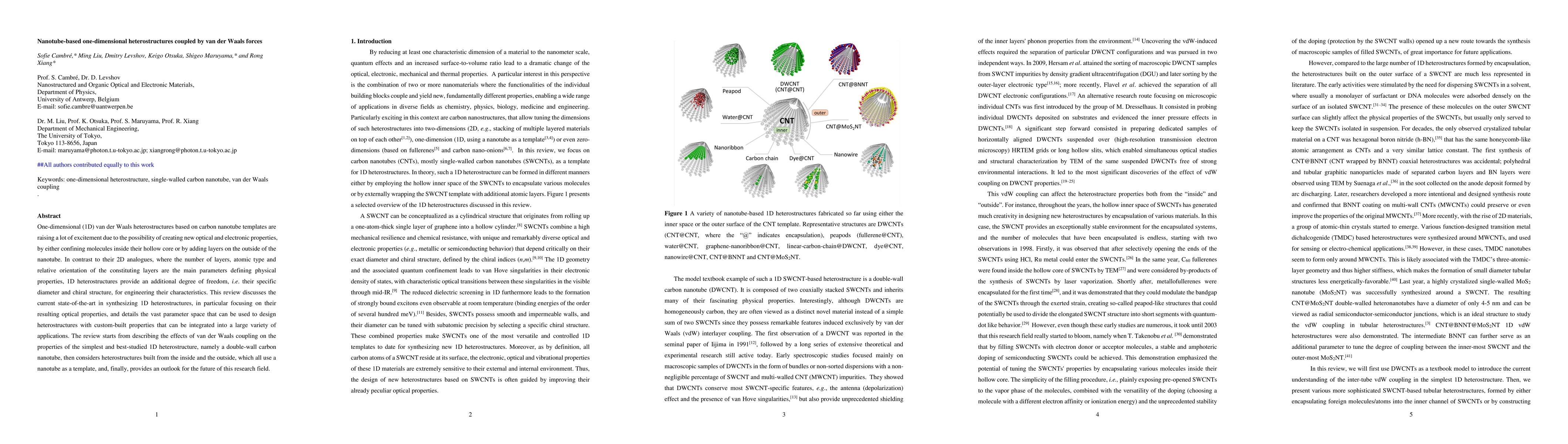 One-dimensional (1D) van der Waals heterostructures based on carbon nanotube templates are raising a lot of excitement due to the possibility of creating new optical and electronic properties, by either confining molecules inside their hollow core or by adding layers on the outside of the nanotube. In contrast to their 2D analogues, where the number of layers, atomic type and relative orientation of the constituting layers are the main parameters defining physical properties, 1D heterostructures provide an additional degree of freedom, i.e. their specific diameter and chiral structure, for engineering their characteristics. This review discusses the current state-of-the-art in synthesizing 1D heterostructures, in particular focusing on their resulting optical properties, and details the vast parameter space that can be used to design heterostructures with custom-built properties that can be integrated into a large variety of applications. The review starts from describing the effects of van der Waals coupling on the properties of the simplest and best-studied 1D heterostructure, namely a double-wall carbon nanotube, then considers heterostructures built from the inside and the outside, which all use a nanotube as a template, and, finally, provides an outlook for the future of this research field.