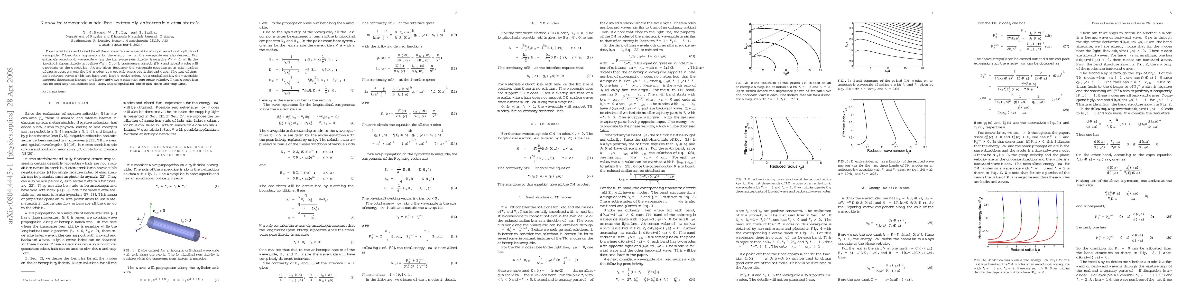 This paper presents exact solutions for wave propagation modes in an anisotropic cylindrical nanowire waveguide, revealing that only transverse magnetic and hybrid modes propagate. The waveguide supports an infinite number of eigenmodes, with potential applications as phase shifters, filters, and optical buffers due to its unique backward wave characteristics.
