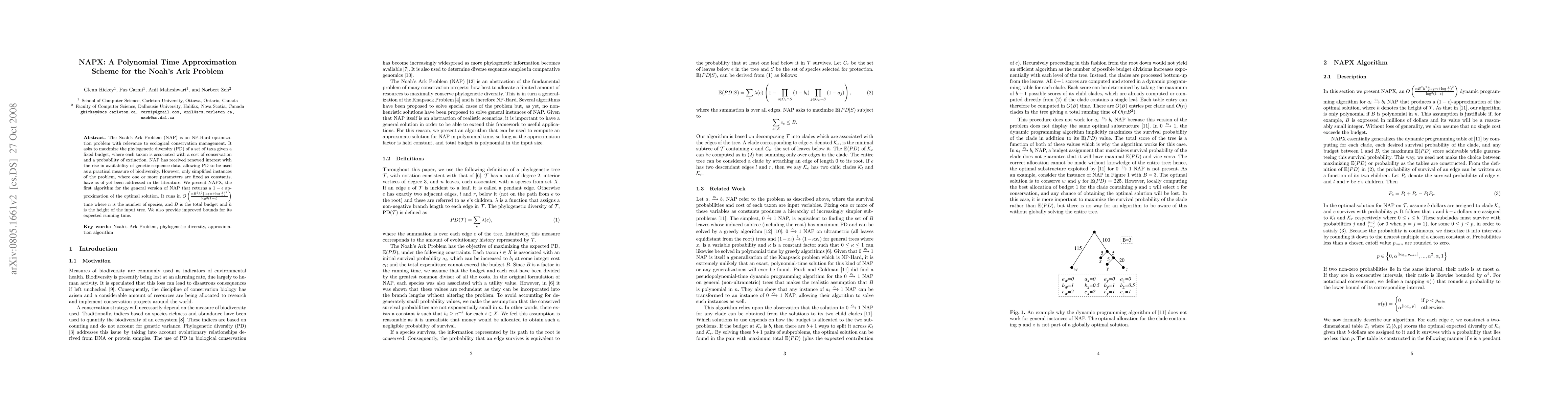 The Noah's Ark Problem (NAP) is an NP-Hard optimization problem with relevance to ecological conservation management. It asks to maximize the phylogenetic diversity (PD) of a set of taxa given a fixed budget, where each taxon is associated with a cost of conservation and a probability of extinction. NAP has received renewed interest with the rise in availability of genetic sequence data, allowing PD to be used as a practical measure of biodiversity. However, only simplified instances of the problem, where one or more parameters are fixed as constants, have as of yet been addressed in the literature. We present NAPX, the first algorithm for the general version of NAP that returns a $1 - \epsilon$ approximation of the optimal solution. It runs in $O(\frac{n B^2 h^2 \log^2n}{\log^2(1 - \epsilon)})$ time where $n$ is the number of species, and $B$ is the total budget and $h$ is the height of the input tree. We also provide improved bounds for its expected running time.