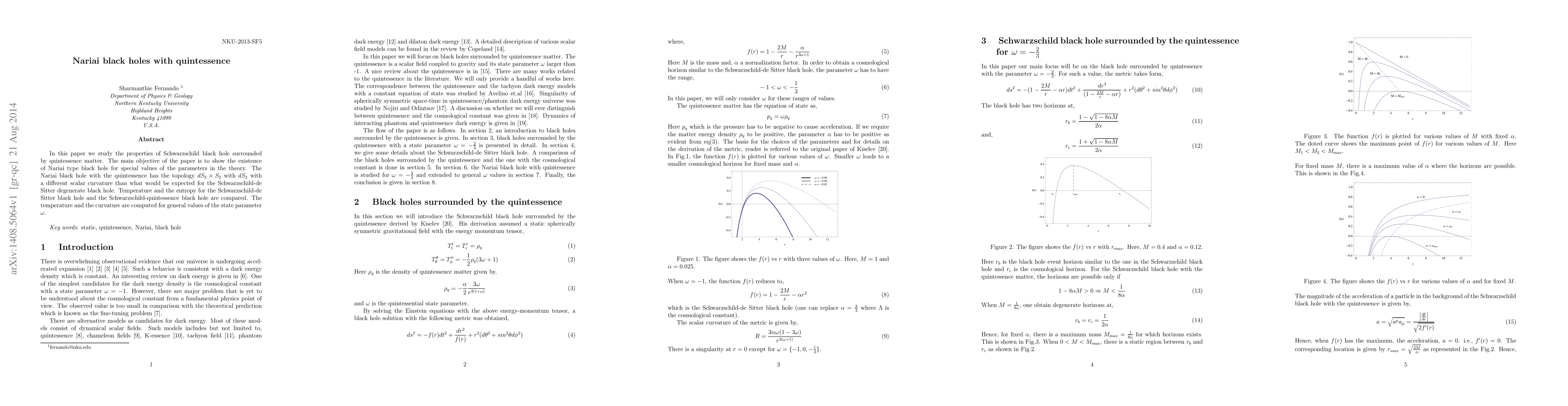 The paper presents a detailed comparison of physical properties between black holes with quintessence and Schwarzschild-de Sitter black holes, identifying unique characteristics of Nariai black holes in this context.