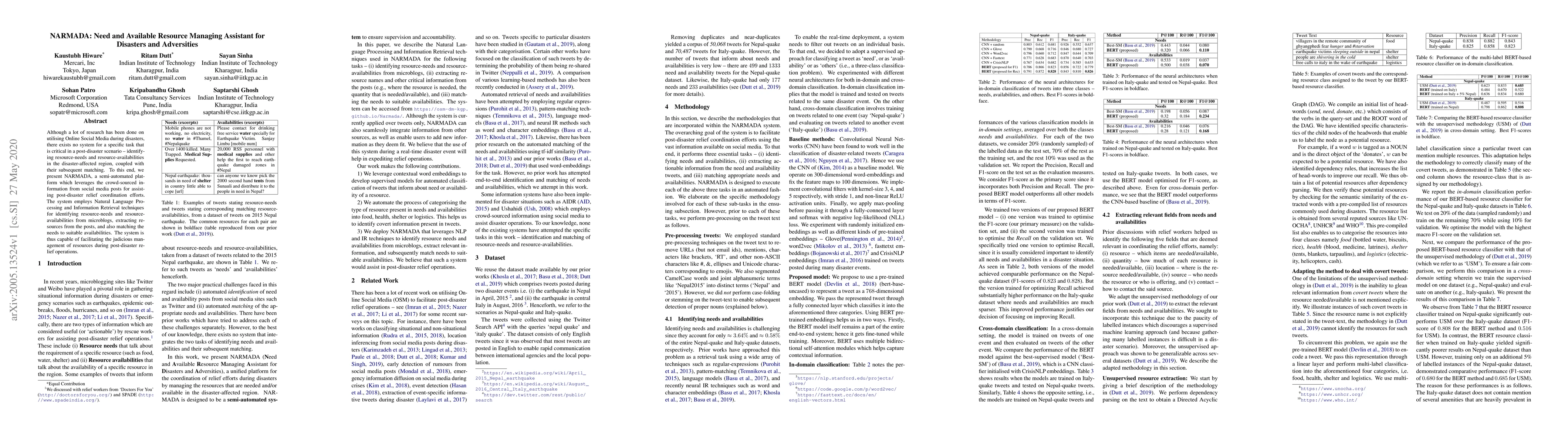 Although a lot of research has been done on utilising Online Social Media during disasters, there exists no system for a specific task that is critical in a post-disaster scenario -- identifying resource-needs and resource-availabilities in the disaster-affected region, coupled with their subsequent matching. To this end, we present NARMADA, a semi-automated platform which leverages the crowd-sourced information from social media posts for assisting post-disaster relief coordination efforts. The system employs Natural Language Processing and Information Retrieval techniques for identifying resource-needs and resource-availabilities from microblogs, extracting resources from the posts, and also matching the needs to suitable availabilities. The system is thus capable of facilitating the judicious management of resources during post-disaster relief operations.
