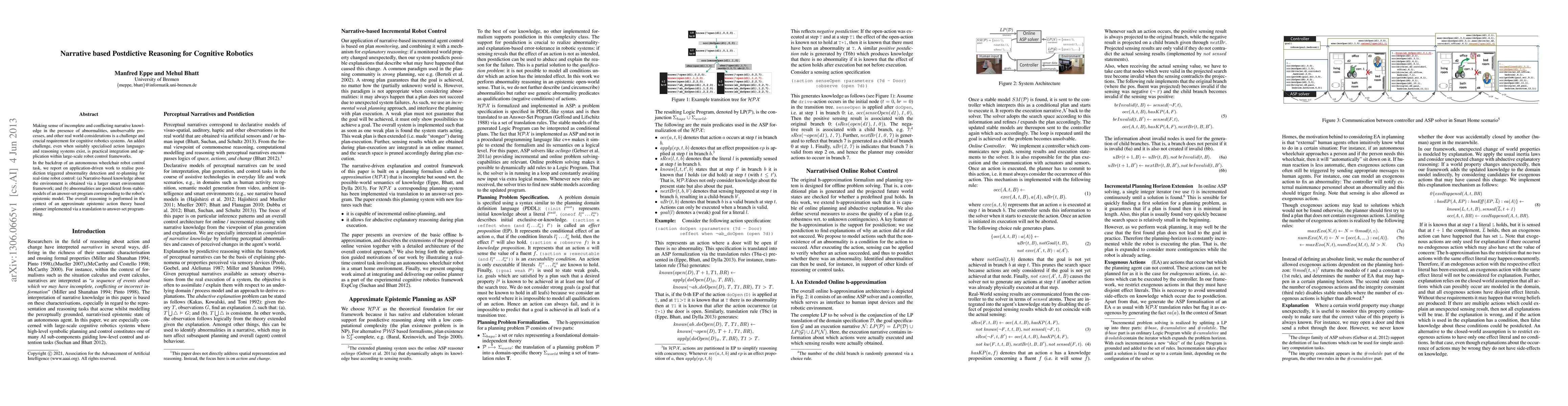This paper explores narrative-based postdictive reasoning for cognitive robotics, focusing on detecting abnormalities and re-planning in real-time control scenarios, such as autonomous wheelchair navigation. The approach integrates narrative knowledge from a smart environment framework and employs answer-set programming for postdiction and planning.