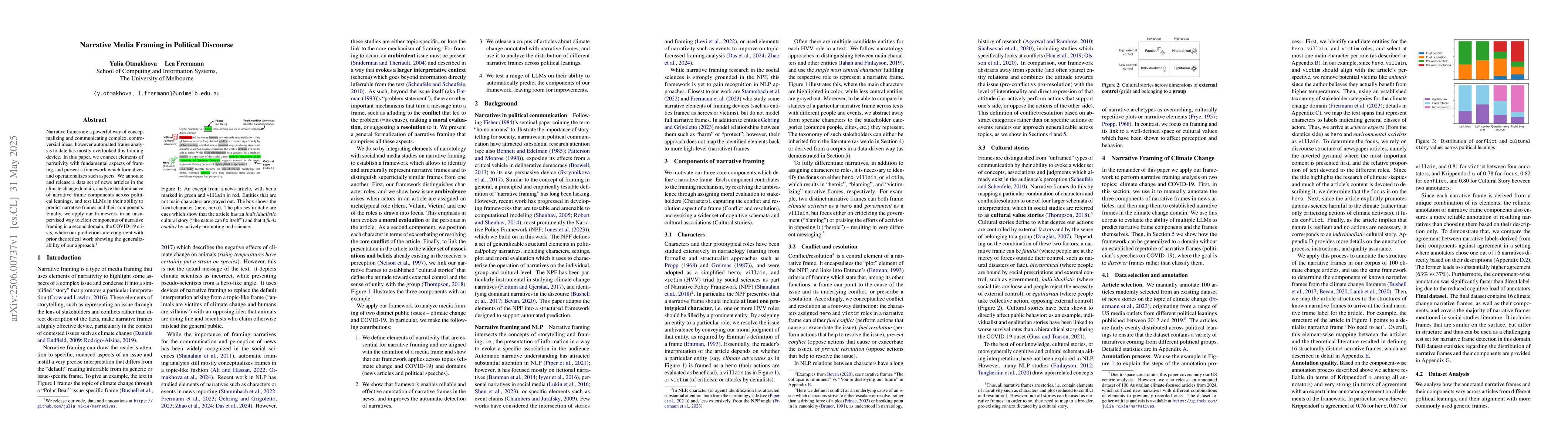 This research is significant as it provides a framework for analyzing narrative media framing in political discourse, which has been largely overlooked by automated approaches. The findings contribute to understanding how narratives shape public opinion and policy-making, particularly in the context of climate change.