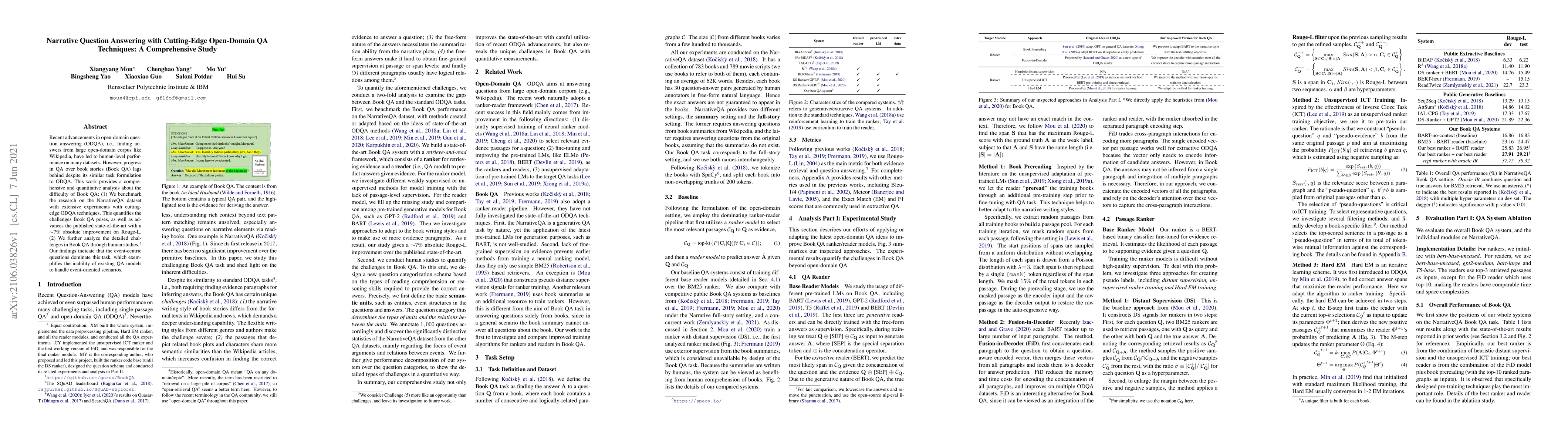 Recent advancements in open-domain question answering (ODQA), i.e., finding answers from large open-domain corpus like Wikipedia, have led to human-level performance on many datasets. However, progress in QA over book stories (Book QA) lags behind despite its similar task formulation to ODQA. This work provides a comprehensive and quantitative analysis about the difficulty of Book QA: (1) We benchmark the research on the NarrativeQA dataset with extensive experiments with cutting-edge ODQA techniques. This quantifies the challenges Book QA poses, as well as advances the published state-of-the-art with a $\sim$7\% absolute improvement on Rouge-L. (2) We further analyze the detailed challenges in Book QA through human studies.\footnote{\url{https://github.com/gorov/BookQA}.} Our findings indicate that the event-centric questions dominate this task, which exemplifies the inability of existing QA models to handle event-oriented scenarios.
