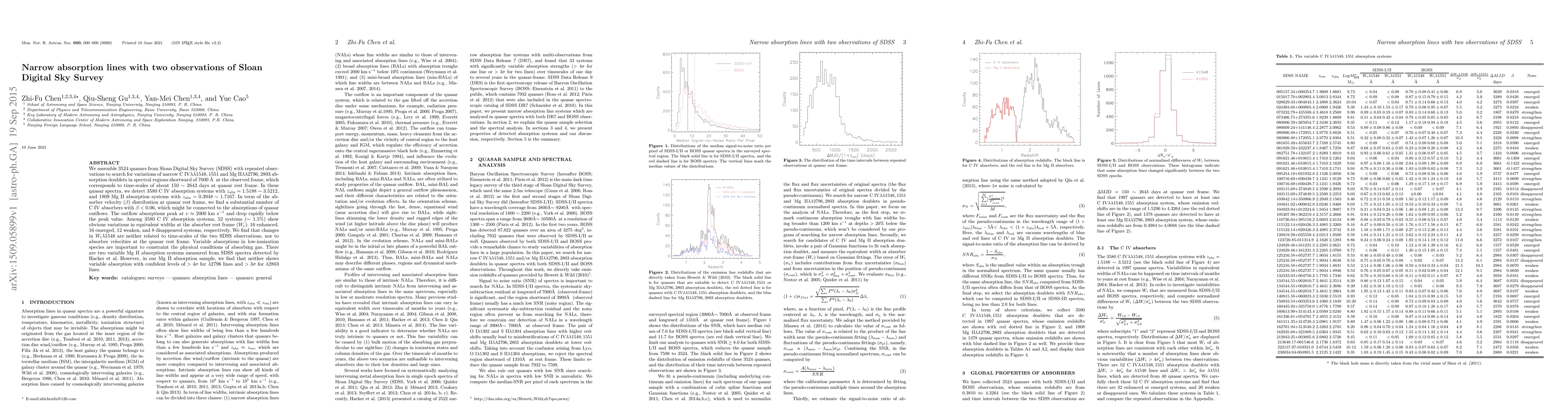 This study analyzes 3524 quasars from the Sloan Digital Sky Survey (SDSS) to investigate variations in narrow absorption lines of C IV and Mg II. The research identifies 52 variable C IV absorption systems out of 3580, while no variable Mg II absorption systems are found in the sample. The study concludes that changes in the equivalent widths of C IV absorptions are not related to observation timescales or absorber velocities.