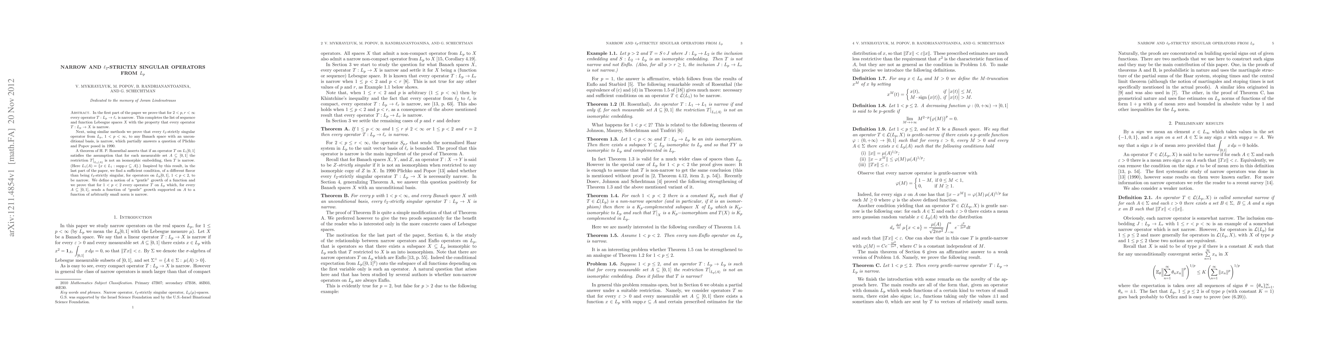This paper proves that every operator $T: L_p \to \ell_r$ is narrow for $2 < p, r < \infty$ and every $\ell_2$-strictly singular operator from $L_p$ to any Banach space with an unconditional basis is narrow for $1<p<\infty$. It also introduces a new notion of "gentle" growth to show that certain operators on $L_p[0,1]$ for $1<p<2$ are narrow.