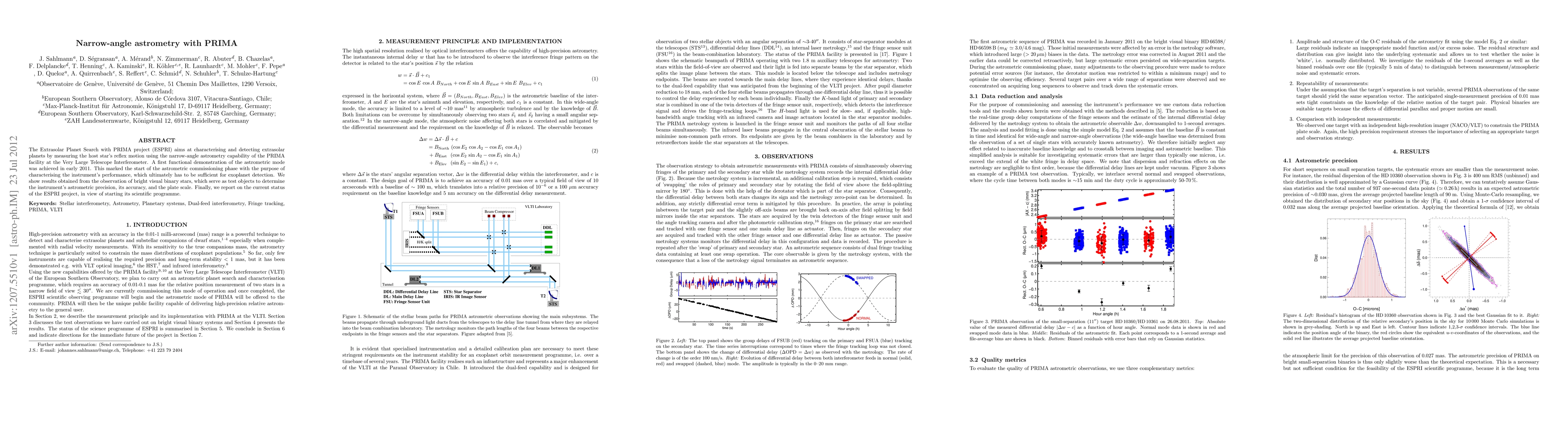 The PRIMA facility at the Very Large Telescope Interferometer is demonstrating narrow-angle astrometry for detecting exoplanets by measuring host star reflex motion. Initial results from observing binary stars show promising instrument performance and precision, marking the start of the ESPRI project's scientific programme.