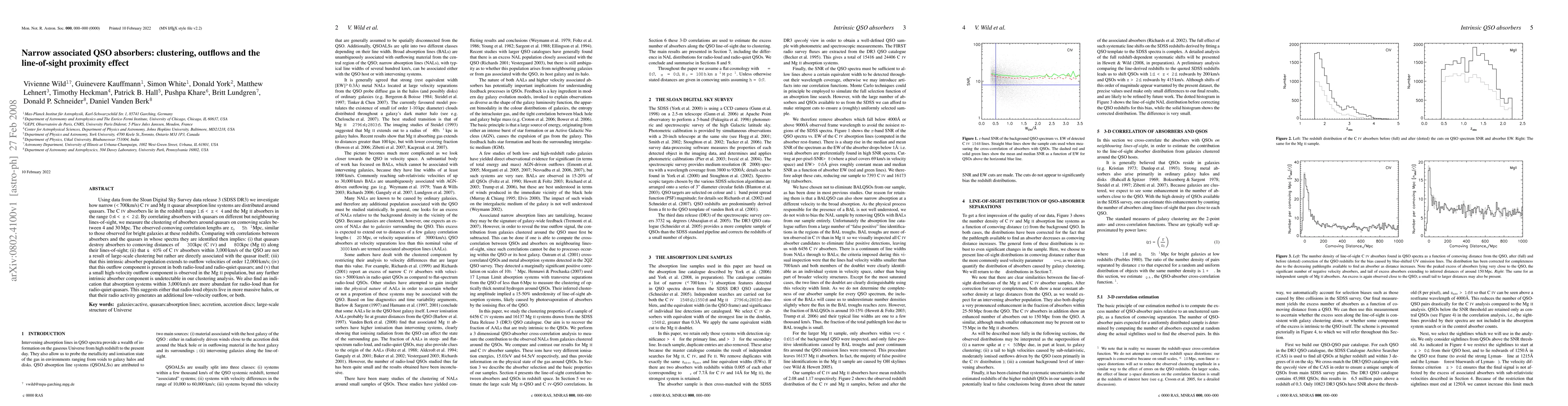 This paper investigates the clustering of narrow CIV and MgII quasar absorption line systems using SDSS DR3 data, finding that quasars destroy absorbers within ~300-800kpc along their lines-of-sight and that >40% of CIV absorbers are directly associated with the quasars, extending to outflow velocities of ~12,000km/s.