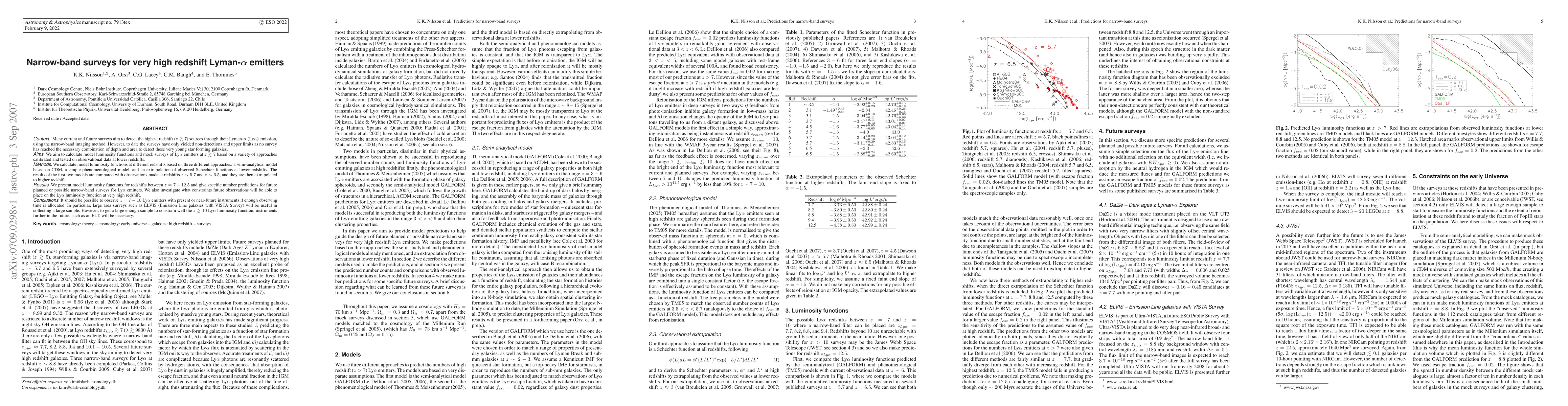 This paper models luminosity functions for high-redshift Lyman-alpha emitters (z >~ 7) using various approaches and predicts the detectability of these sources with current and future narrow-band surveys. It concludes that while present instruments can detect z = 7-10 emitters, future large-area surveys and advanced telescopes are needed to study the z >= 10 population.