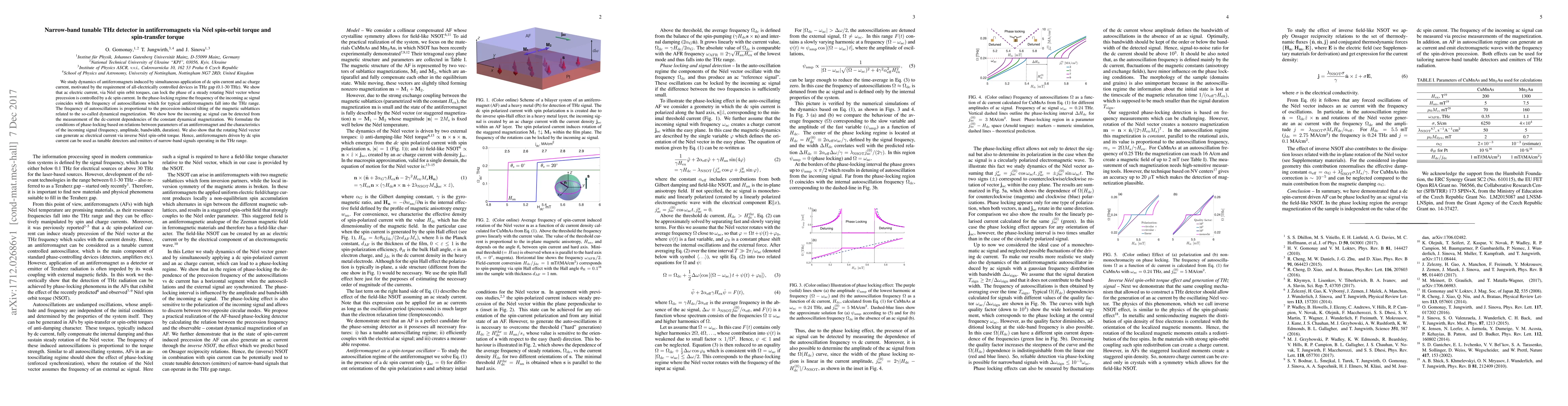We study dynamics of antiferromagnets induced by simultaneous application of dc spin current and ac charge current, motivated by the requirement of all-electrically controlled devices in THz gap (0.1-30 THz). We show that ac electric current, via N\'eel spin orbit torques, can lock the phase of a steady rotating N\'eel vector whose precession is controlled by a dc spin current. In the phase-locking regime the frequency of the incoming ac signal coincides with the frequency of autooscillations which for typical antiferromagnets fall into the THz range. The frequency of autooscillations is proportional to the precession-induced tilting of the magnetic sublattices related to the so-called dynamical magnetization. We show how the incoming ac signal can be detected from the measurement of the dc-current dependencies of the constant dynamical magnetization. We formulate the conditions of phase-locking based on relations between parameters of an antiferromagnet and the characteristics of the incoming signal (frequency, amplitude, bandwidth, duration). We also show that the rotating N\'eel vector can generate ac electrical current via inverse N\'eel spin-orbit torque. Hence, antiferromagnets driven by dc spin current can be used as tunable detectors and emitters of narrow-band signals operating in the THz range.