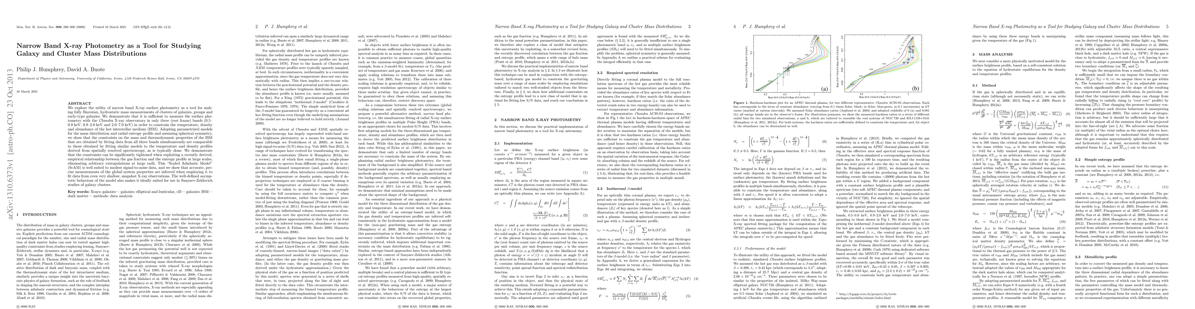 We explore the utility of narrow band X-ray surface photometry as a tool for making fully Bayesian, hydrostatic mass measurements of clusters of galaxies, groups and early-type galaxies. We demonstrate that it is sufficient to measure the surface photometry with the Chandra X-ray observatory in only three (rest frame) bands (0.5--0.9 keV, 0.9--2.0 keV and 2.0--7.0 keV) in order to constrain the temperature, density and abundance of the hot interstellar medium (ISM). Adopting parametrized models for the mass distribution and radial entropy profile and assuming spherical symmetry, we show that the constraints on the mass and thermodynamic properties of the ISM that are obtained by fitting data from all three bands simultaneously are comparable to those obtained by fitting similar models to the temperature and density profiles derived from spatially resolved spectroscopy, as is typically done. We demonstrate that the constraints can be significantly tightened when exploiting a recently derived, empirical relationship between the gas fraction and the entropy profile at large scales, eliminating arbitrary extrapolations at large radii. This "Scaled Adiabatic Model" (ScAM) is well suited to modest signal-to-noise data, and we show that accurate, precise measurements of the global system properties are inferred when employing it to fit data from even very shallow, snapshot X-ray observations. The well-defined asymptotic behaviour of the model also makes it ideally suited for use in Sunyaev-Zeldovich studies of galaxy clusters.