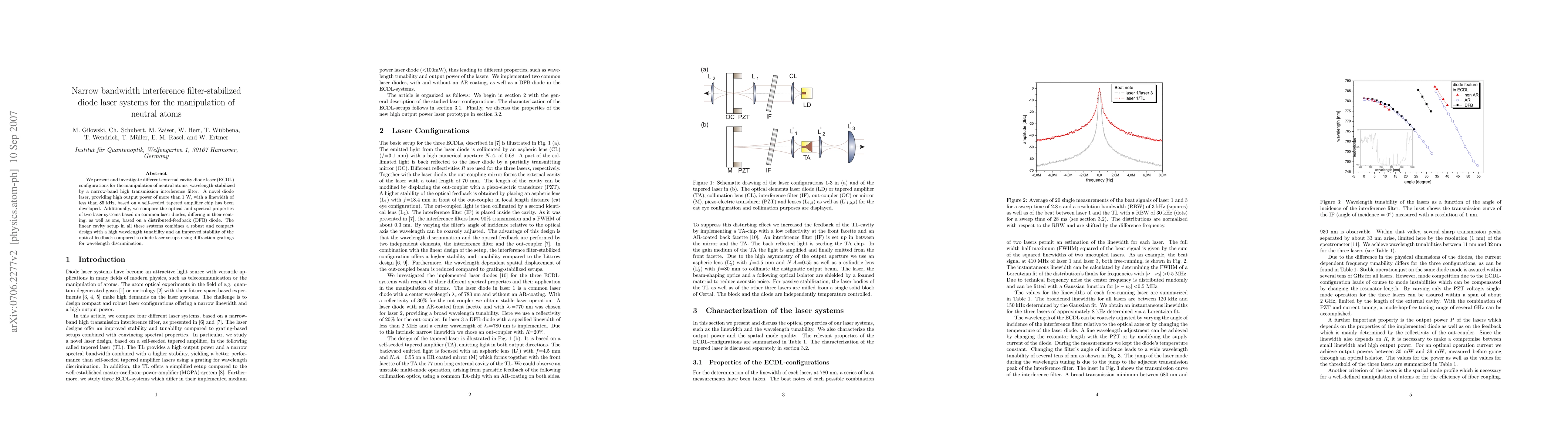 This research investigates various external cavity diode laser (ECDL) configurations for manipulating neutral atoms, stabilized by a narrow-band interference filter. A novel high-power diode laser with excellent spectral properties is developed, and comparisons are made between different laser systems based on their optical and spectral properties.