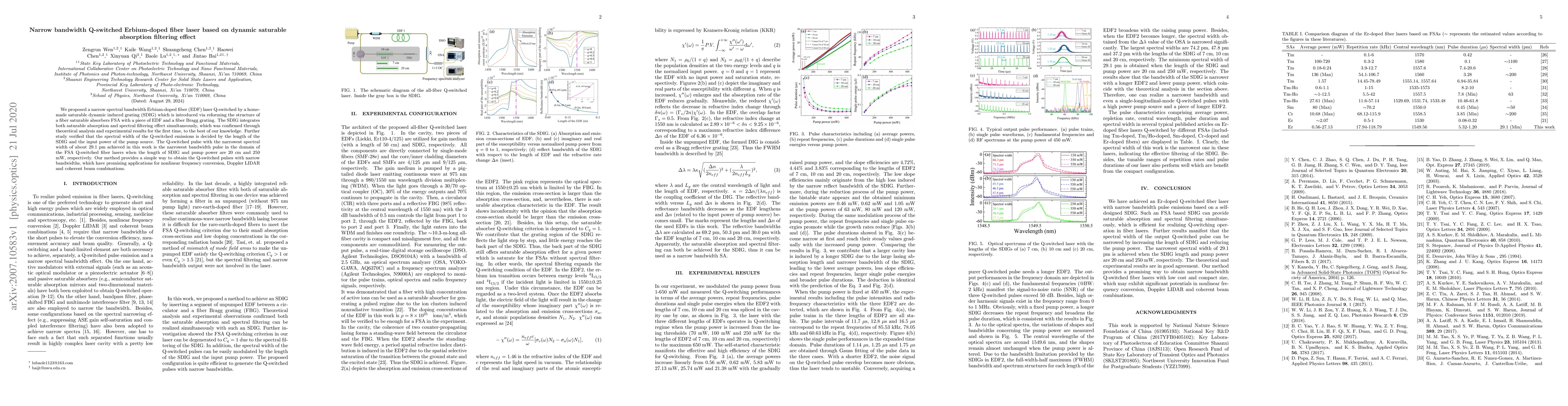 This paper proposes a novel narrow bandwidth Q-switched Erbium-doped fiber laser utilizing a homemade saturable dynamic induced grating (SDIG) for dynamic absorption and spectral filtering. The method achieves the narrowest spectral bandwidth pulse of 29.1 pm, demonstrating potential applications in nonlinear frequency conversion and LIDAR.