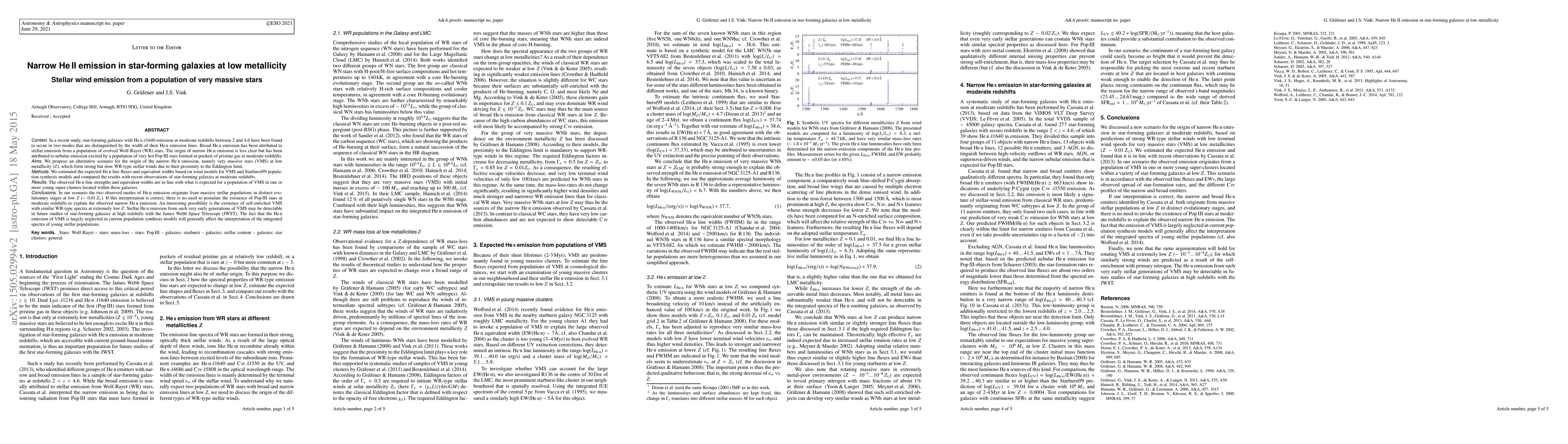 This study proposes that narrow HeII emission in star-forming galaxies at low metallicity is due to very massive stars (VMS) rather than primordial PopIII stars, attributing it to slow WR-type winds from VMS near the Eddington limit. The findings suggest that observed HeII line strengths align with VMS in young super-clusters, potentially detectable with future telescopes like the James Webb Space Telescope.