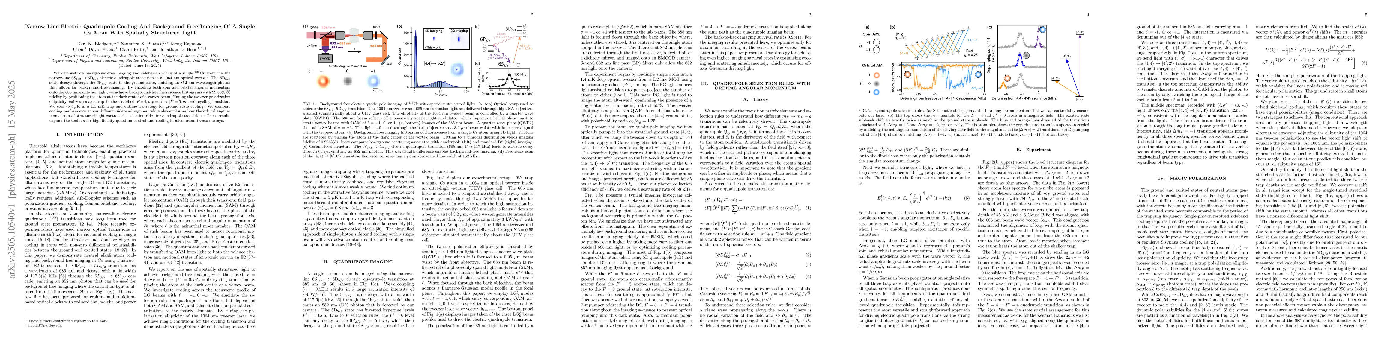 The research utilizes a 1064 nm optical tweezer to cool a single 133Cs atom via the narrow-line 6S1/2 to 5D5/2 electric quadrupole transition. Spin and orbital angular momentum are encoded onto the 685 nm excitation light for background-free imaging and fluorescence histograms with high fidelity.