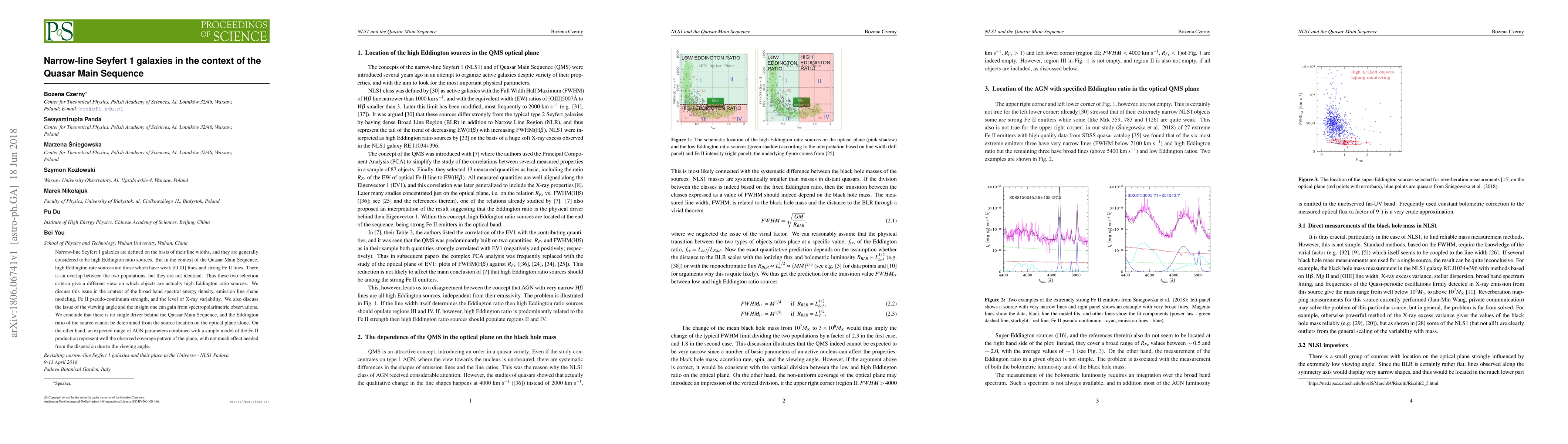 This paper examines the classification of Narrow-line Seyfert 1 galaxies in relation to the Quasar Main Sequence, highlighting discrepancies in identifying high Eddington ratio sources based on different criteria. It concludes that the Quasar Main Sequence is influenced by multiple factors beyond just the Eddington ratio, and viewing angle plays a minor role in the observed dispersion.