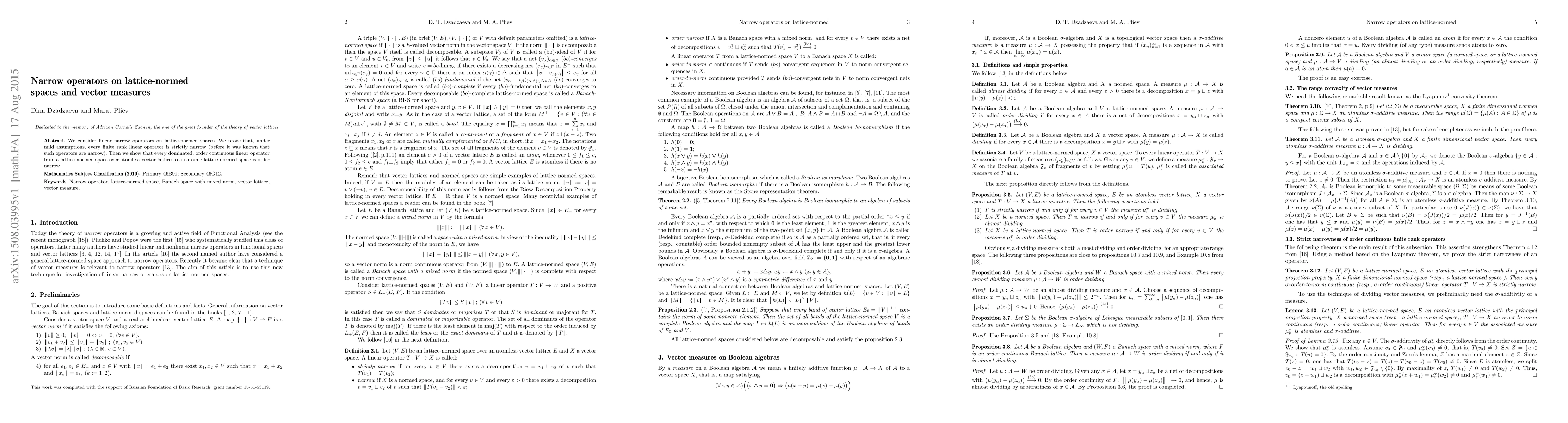 This paper explores linear narrow operators in lattice-normed spaces, proving that finite rank operators are strictly narrow, and demonstrating that dominated, order continuous operators from atomless to atomic lattice-normed spaces are order narrow.