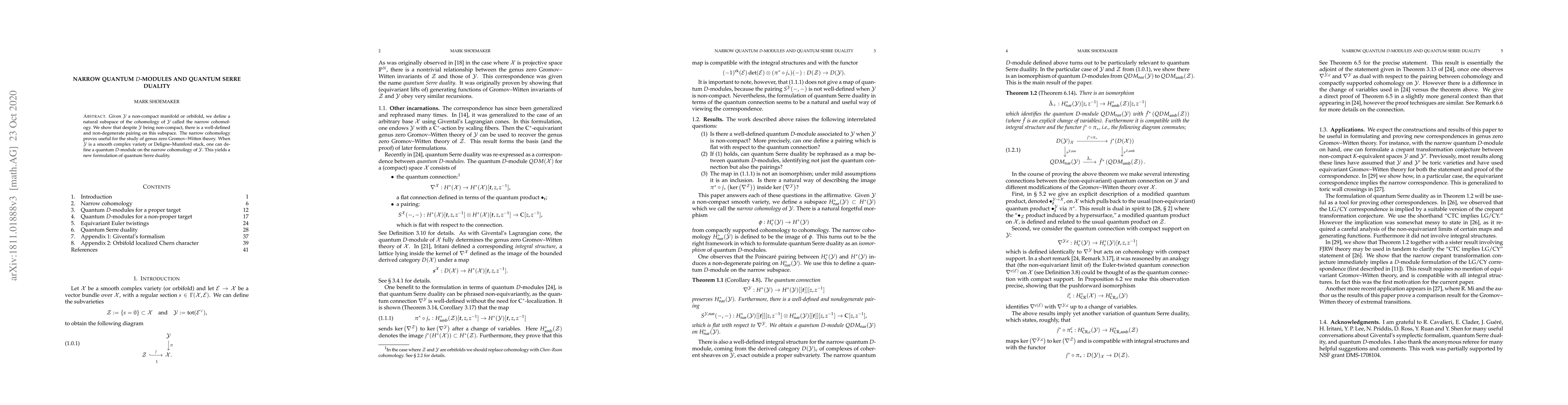 Given Y a non-compact manifold or orbifold, we define a natural subspace of the cohomology of Y called the narrow cohomology. We show that despite Y being non-compact, there is a well-defined and non-degenerate pairing on this subspace. The narrow cohomology proves useful for the study of genus zero Gromov-Witten theory. When Y is a smooth complex variety or Deligne-Mumford stack, one can define a quantum D-module on the narrow cohomology of Y. This yields a new formulation of quantum Serre duality.
