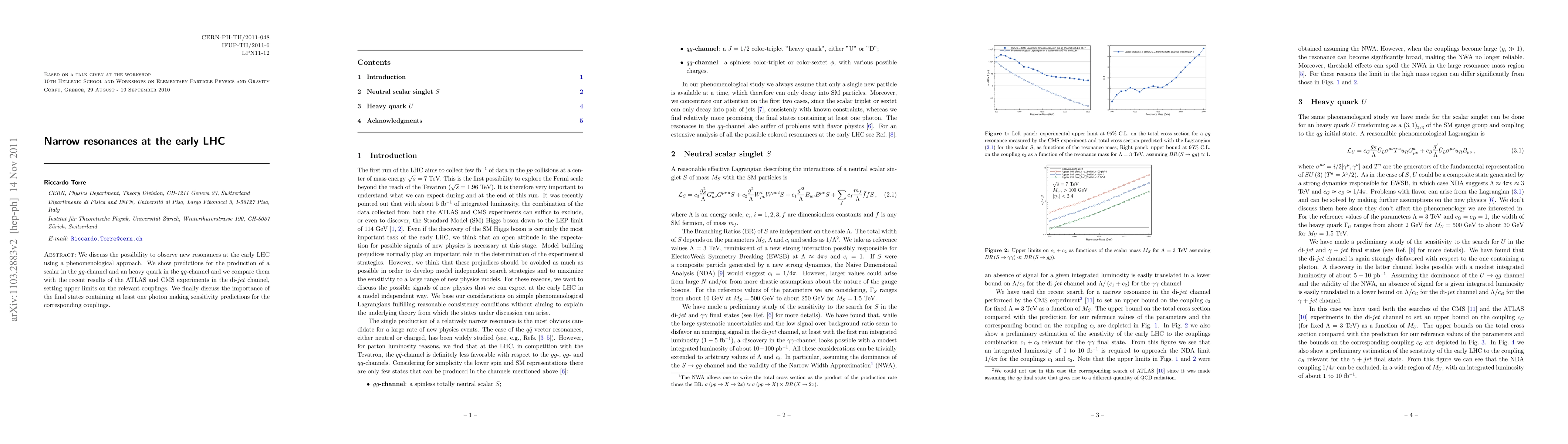 This paper explores the potential observation of new resonances at the early LHC through a phenomenological approach, predicting the production of a scalar in the gg-channel and a heavy quark in the qg-channel, and compares these predictions with the ATLAS and CMS di-jet results to set upper limits on the relevant couplings. It also highlights the importance of final states with at least one photon for sensitivity and provides corresponding coupling predictions.