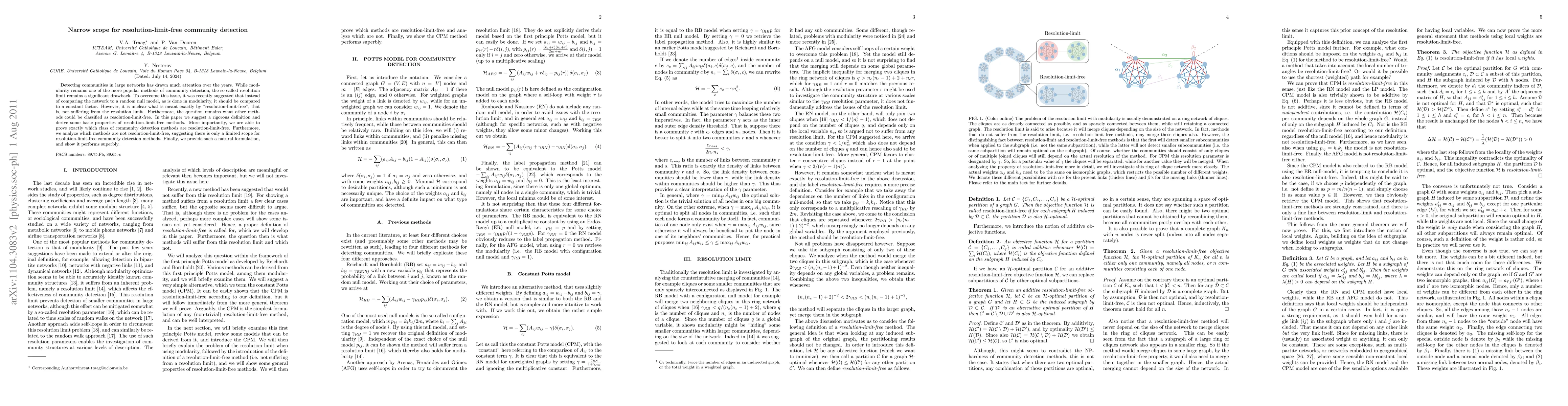 This paper rigorously defines "resolution-limit-free" community detection methods and proves that only a limited class of methods can achieve this, while others are inherently constrained by the resolution limit. The authors demonstrate a superior natural formulation within the permissible scope.