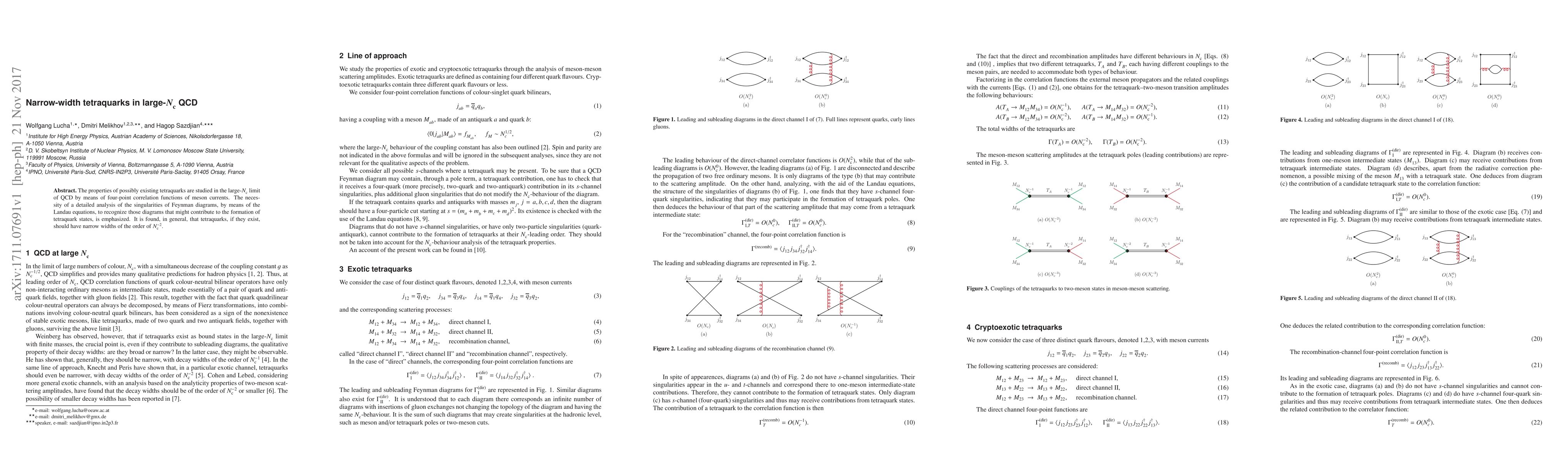 Summary: This study explores the properties of potential tetraquarks within the large-$N_{\mathrm{c}}$ limit of QCD using meson current correlation functions. It highlights the importance of analyzing Feynman diagram singularities to identify tetraquark-forming diagrams, concluding that tetraquarks, if they exist, likely have narrow widths proportional to $N_{\mathrm{c}}^{-2}$.