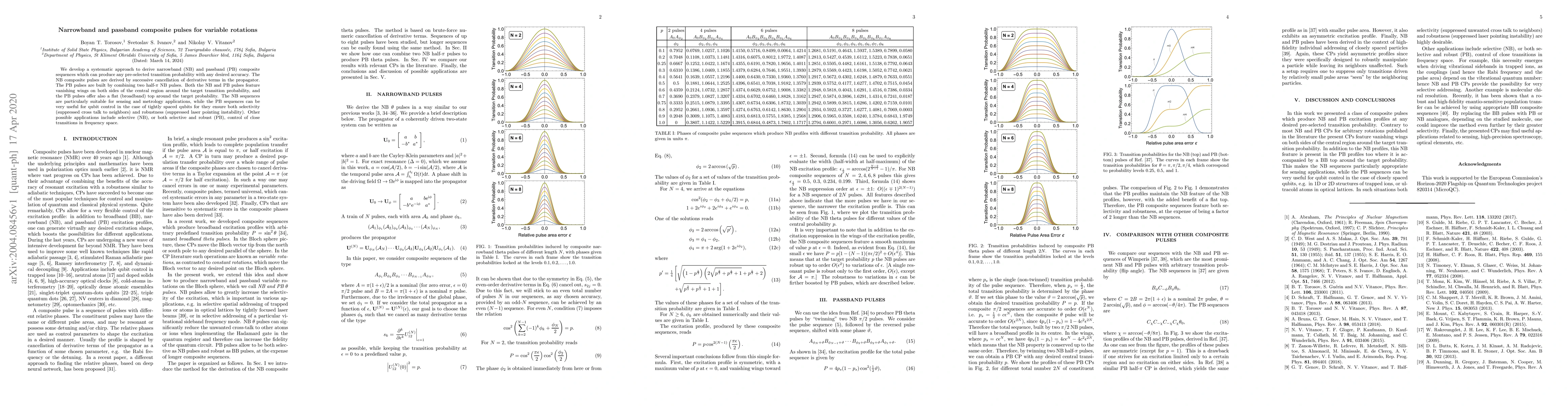 This paper develops narrowband and passband composite pulse sequences for precise control of transition probabilities, offering both selectivity and robustness for applications in sensing, metrology, and qubit control, especially for tightly spaced qubits. The derived sequences minimize cross-talk and laser pointing errors.
