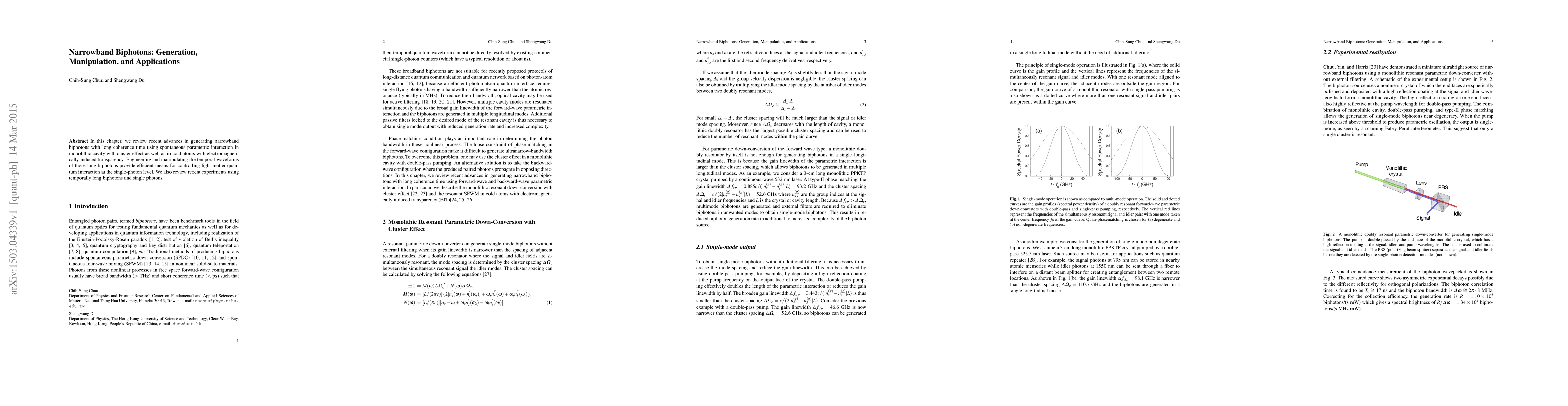 In this chapter, we review recent advances in generating narrowband biphotons with long coherence time using spontaneous parametric interaction in monolithic cavity with cluster effect as well as in cold atoms with electromagnetically induced transparency. Engineering and manipulating the temporal waveforms of these long biphotons provide efficient means for controlling light-matter quantum interaction at the single-photon level. We also review recent experiments using temporally long biphotons and single photons.