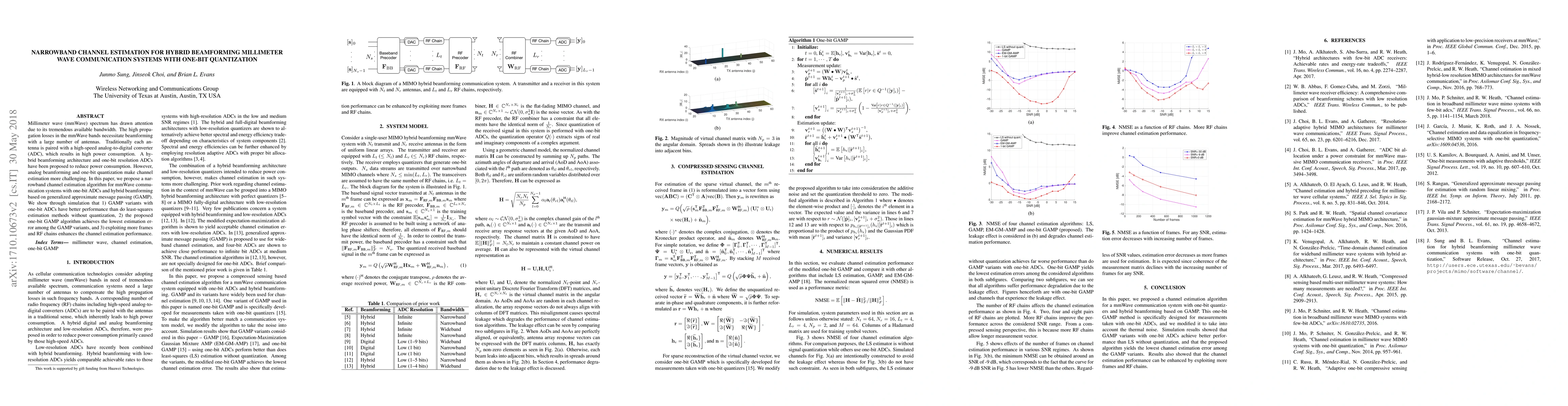 The research proposes a narrowband channel estimation algorithm for mmWave communication systems using hybrid beamforming and one-bit ADCs, based on generalized approximate message passing (GAMP).