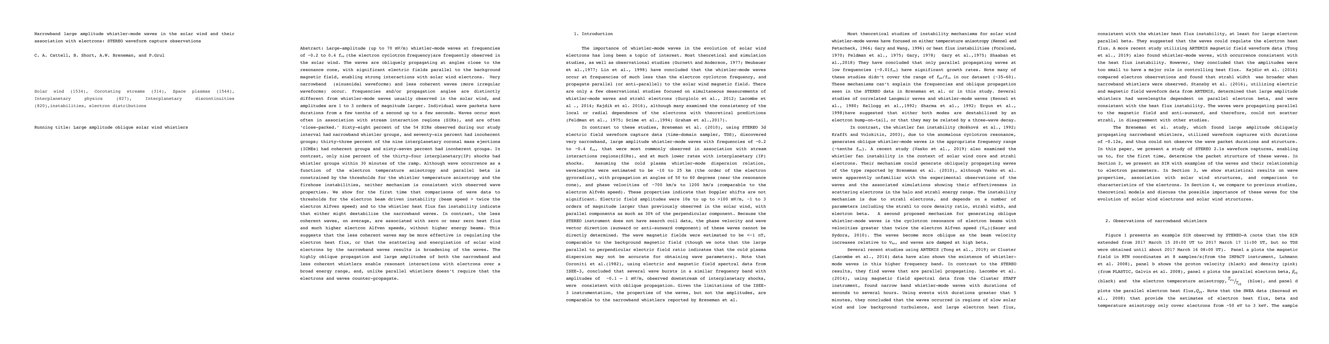 This study observes large amplitude whistler-mode waves in the solar wind, often linked to stream interaction regions, and finds that these waves are most likely destabilized by electron beam-driven instabilities. The waves' interactions with electrons suggest a role in regulating electron heat flux or energizing solar wind electrons.