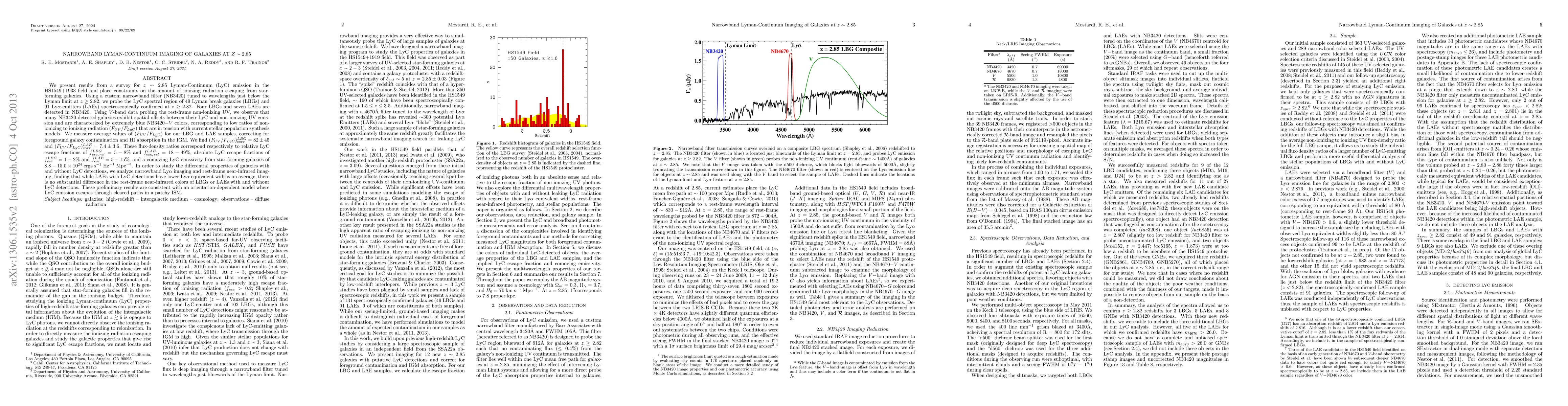 This paper reports on a survey of Lyman-Continuum (LyC) emission in galaxies at z ~ 2.85, finding that while some galaxies exhibit detectable LyC, others do not, with detected galaxies showing a low ratio of non-ionizing to ionizing radiation. The study estimates LyC escape fractions and finds that star-forming galaxies contribute significantly to the cosmic LyC emissivity.