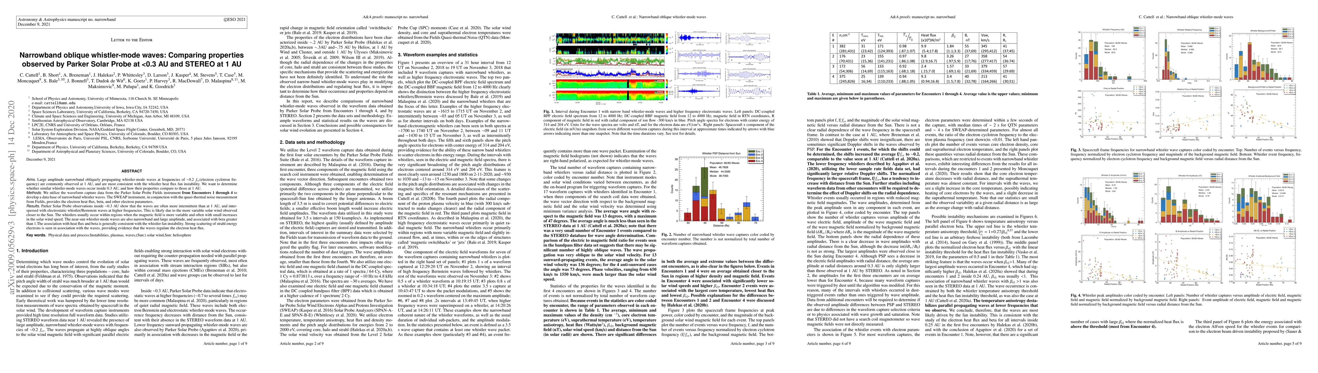 AIM: Large amplitude narrowband obliquely propagating whistler-mode waves at frequencies of ~0.2 fce (electron cyclotron frequency) are commonly observed at 1 AU, and are most consistent with the whistler heat flux fan instability. We want to determine whether similar whistler-mode waves occur inside 0.2 AU, and how their properties compare to those at 1 AU. METHODS: We utilize the waveform capture data from the Parker Solar Probe Fields instrument to develop a data base of narrowband whistler waves. The SWEAP instrument, in conjunction with the quasi-thermal noise measurement form Fields, provides the electron heat flux, beta, and other electron parameters. RESULTS: Parker Solar Probe observations inside ~0.3 AU show that the waves are more intermittent than at 1 AU, and are often interspersed with electrostatic whistler/Bernstein waves at higher frequencies. This is likely due to the more variable solar wind observed closer to the Sun. The whistlers usually occur within regions when the magnetic field is more variable and often with small increases in the solar wind speed. The near-sun whistler-mode waves are also narrowband and large amplitude, and associated with beta greater than 1. Wave angles are sometimes highly oblique (near the resonance cone), but angles have been determined for only a small fraction of the events. The association with heat flux and beta is generally consistent with the whistler fan instability although there are intervals where the heat flux is significantly lower than the instability limit. Strong scattering of strahl energy electrons is seen in association with the waves, providing evidence that the waves regulate the electron heat flux..