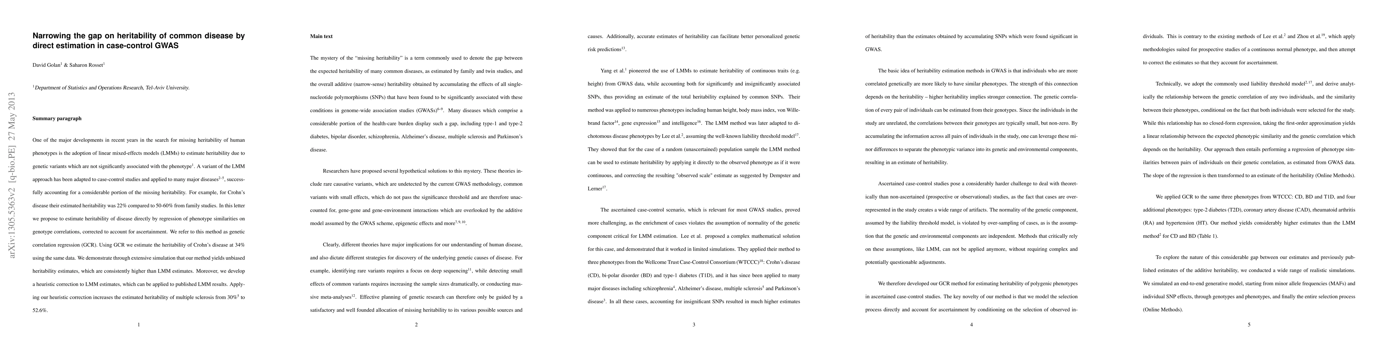 One of the major developments in recent years in the search for missing heritability of human phenotypes is the adoption of linear mixed-effects models (LMMs) to estimate heritability due to genetic variants which are not significantly associated with the phenotype. A variant of the LMM approach has been adapted to case-control studies and applied to many major diseases by Lee et al. (2011), successfully accounting for a considerable portion of the missing heritability. For example, for Crohn's disease their estimated heritability was 22% compared to 50-60% from family studies. In this letter we propose to estimate heritability of disease directly by regression of phenotype similarities on genotype correlations, corrected to account for ascertainment. We refer to this method as genetic correlation regression (GCR). Using GCR we estimate the heritability of Crohn's disease at 34% using the same data. We demonstrate through extensive simulation that our method yields unbiased heritability estimates, which are consistently higher than LMM estimates. Moreover, we develop a heuristic correction to LMM estimates, which can be applied to published LMM results. Applying our heuristic correction increases the estimated heritability of multiple sclerosis from 30% to 52.6%.