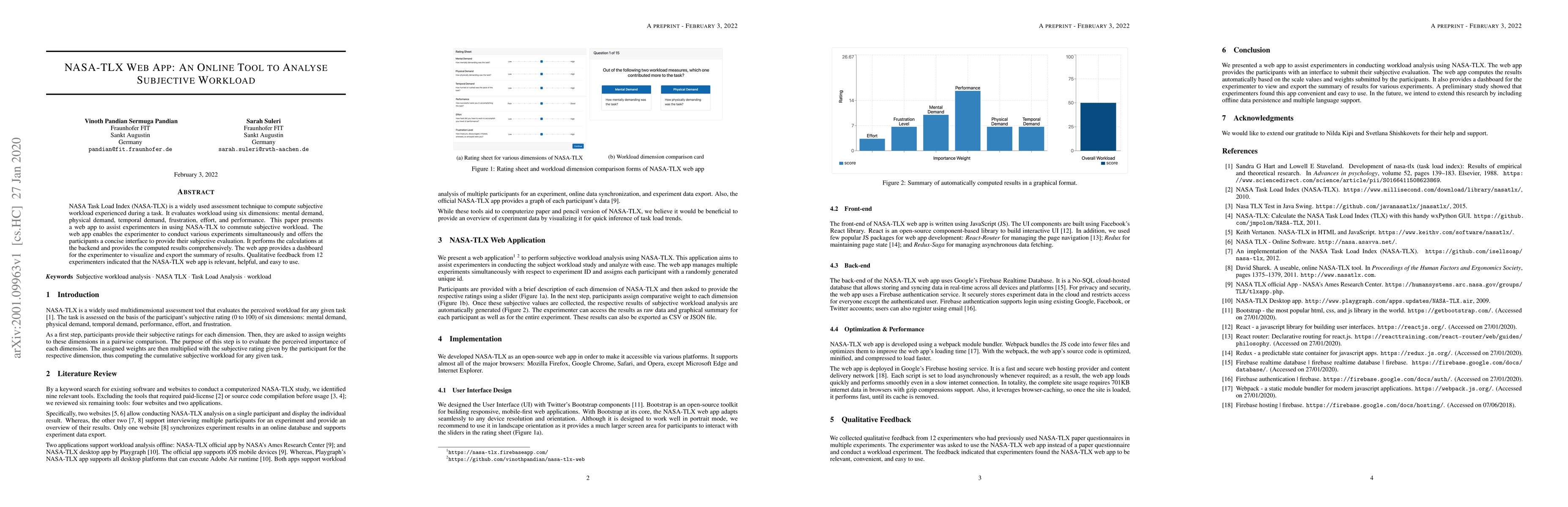 A web app was developed to assist with NASA Task Load Index (NASA-TLX) experiments, providing a user-friendly interface for subjective workload evaluation and comprehensive results visualization.