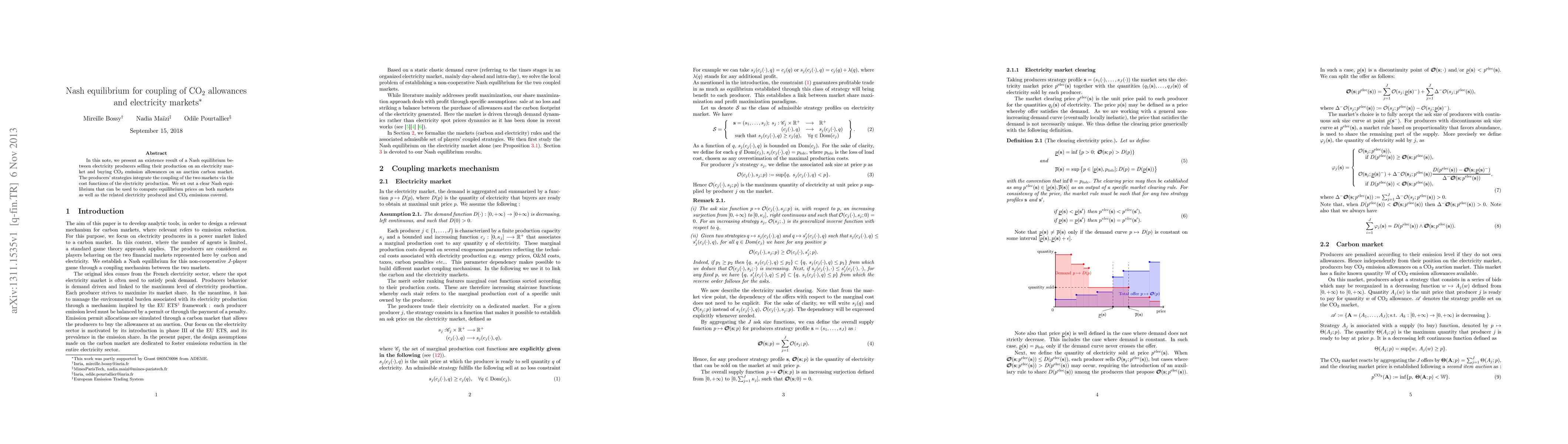 This paper establishes the existence of a Nash equilibrium for electricity producers who sell electricity on a market while purchasing CO2 allowances on a carbon market. The analysis integrates the coupling of both markets into the producers' cost functions to compute equilibrium prices, electricity production, and covered CO2 emissions.