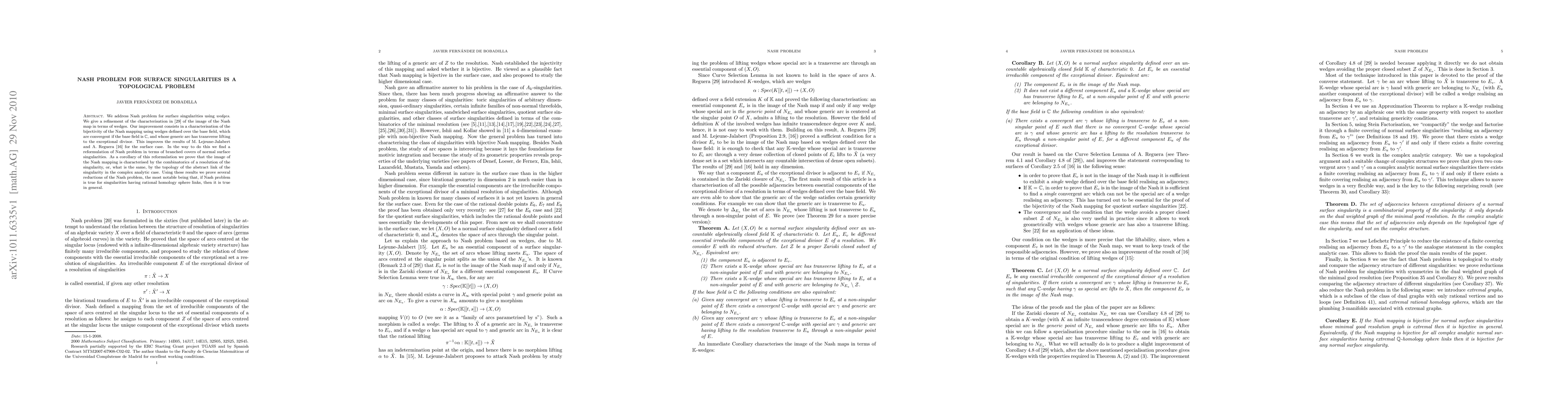 Researchers tackled the Nash problem for surface singularities using wedges, finding a new characterization of the image of the Nash map in terms of combinatorics and topology, with implications for reductions of the problem.