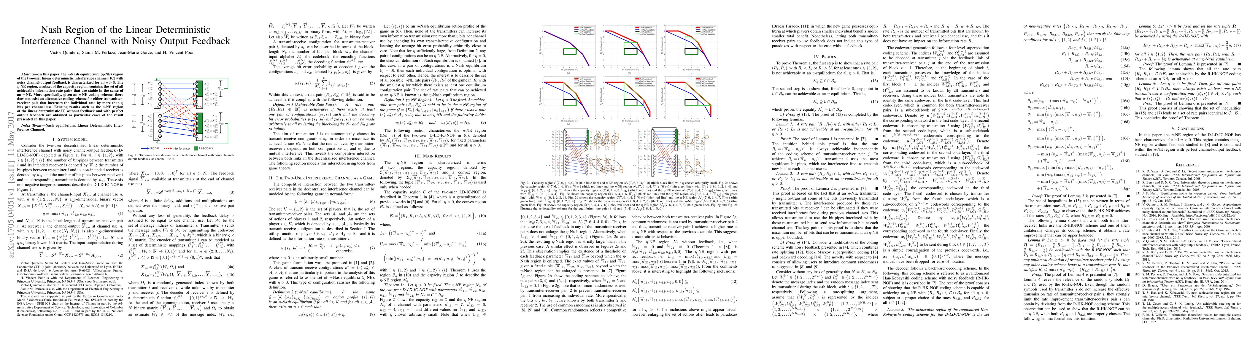 In this paper, the $\eta$-Nash equilibrium ($\eta$-NE) region of the two-user linear deterministic interference channel (IC) with noisy channel-output feedback is characterized for all $\eta > 0$. The $\eta$-NE region, a subset of the capacity region, contains the set of all achievable information rate pairs that are stable in the sense of an $\eta$-NE. More specifically, given an $\eta$-NE coding scheme, there does not exist an alternative coding scheme for either transmitter-receiver pair that increases the individual rate by more than $\eta$ bits per channel use. Existing results such as the $\eta$-NE region of the linear deterministic IC without feedback and with perfect output feedback are obtained as particular cases of the result presented in this paper.
