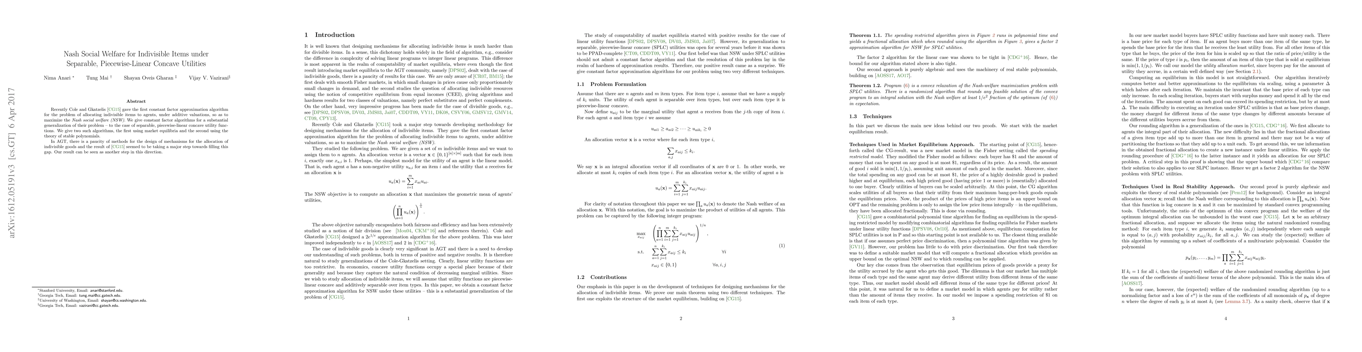 Researchers develop constant factor algorithms for allocating indivisible items to maximize Nash Social Welfare under separable, piecewise-linear concave utility functions.