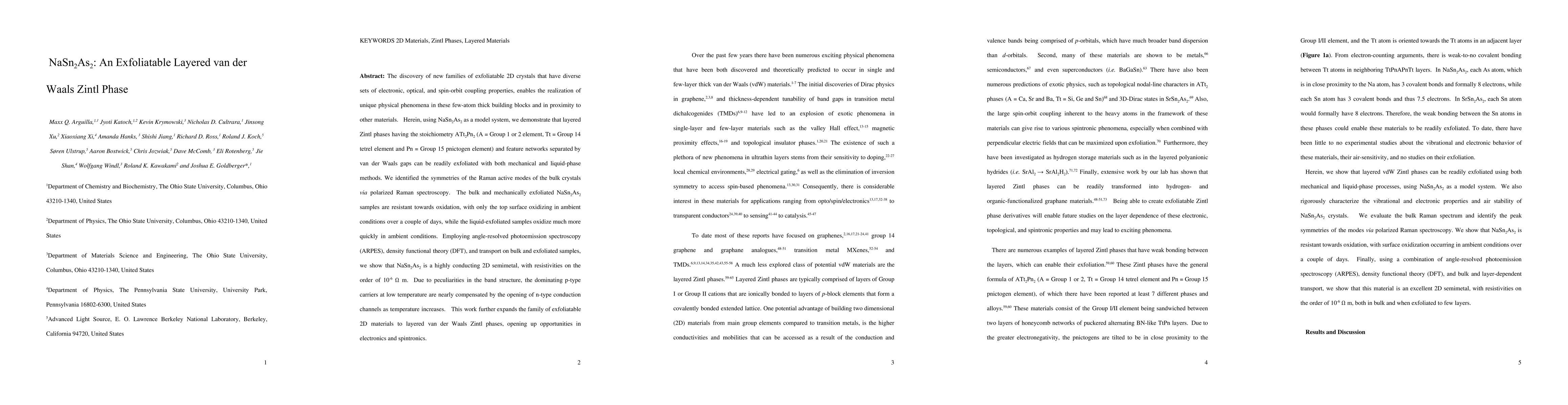 Researchers discovered a new 2D material, NaSn2As2, with unique electronic properties that can be easily exfoliated using mechanical or liquid-phase methods. The material is highly conductive and exhibits peculiarities in its band structure, opening up opportunities for electronics and spintronics applications.