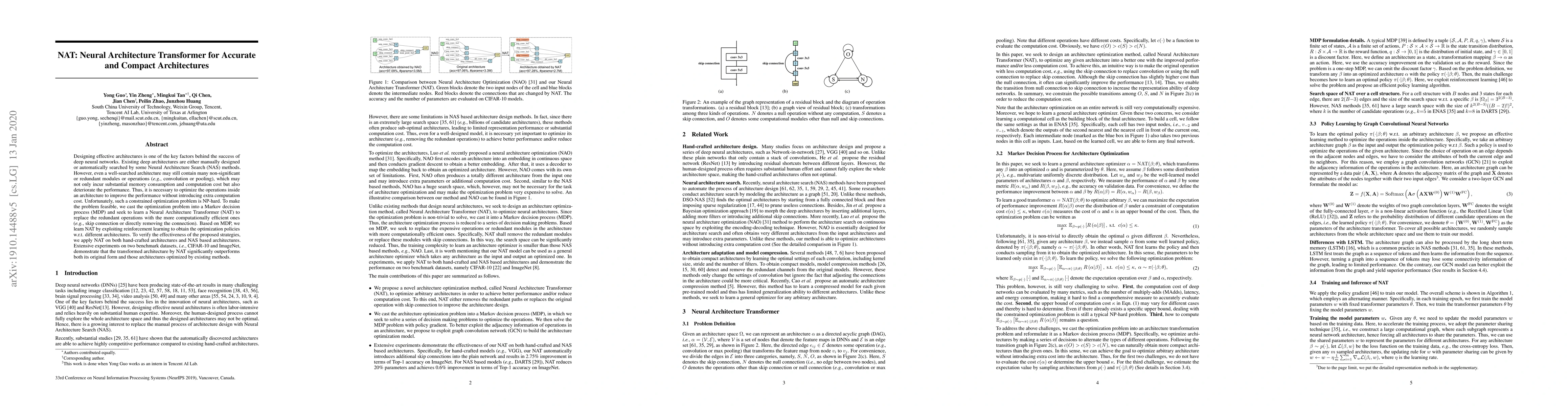 The research introduces Neural Architecture Transformer (NAT), which optimizes deep neural network architectures by replacing non-significant modules with efficient ones, using reinforcement learning. Experiments on CIFAR-10 and ImageNet show NAT significantly outperforms original and existing optimization methods.