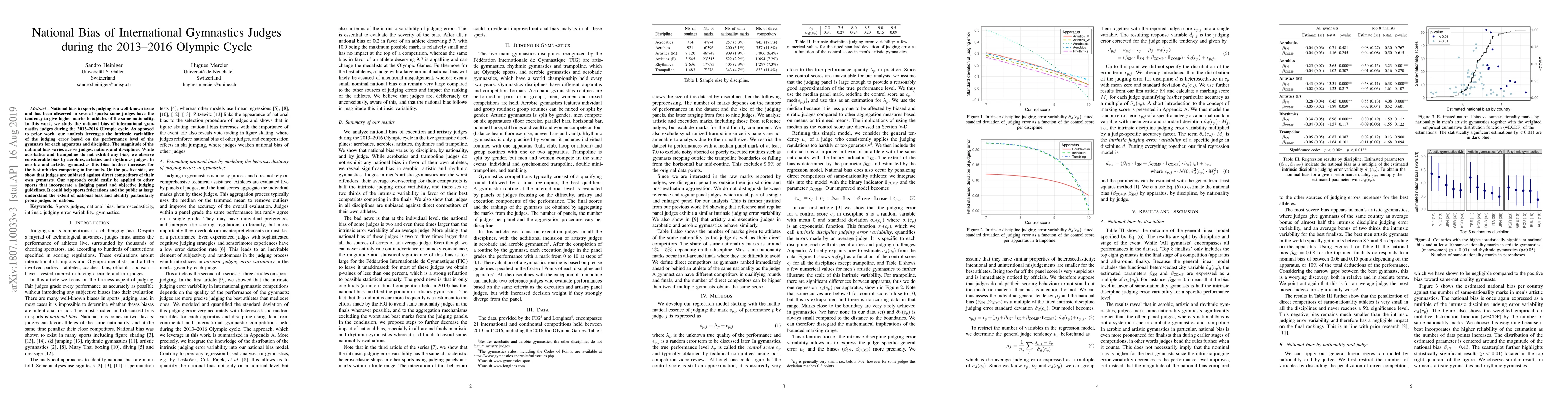 International gymnastics judges exhibit national bias towards athletes from their own country, with varying degrees of bias across disciplines and levels of competition. The study identifies specific apparatus and events where bias is more pronounced and suggests ways to mitigate it.