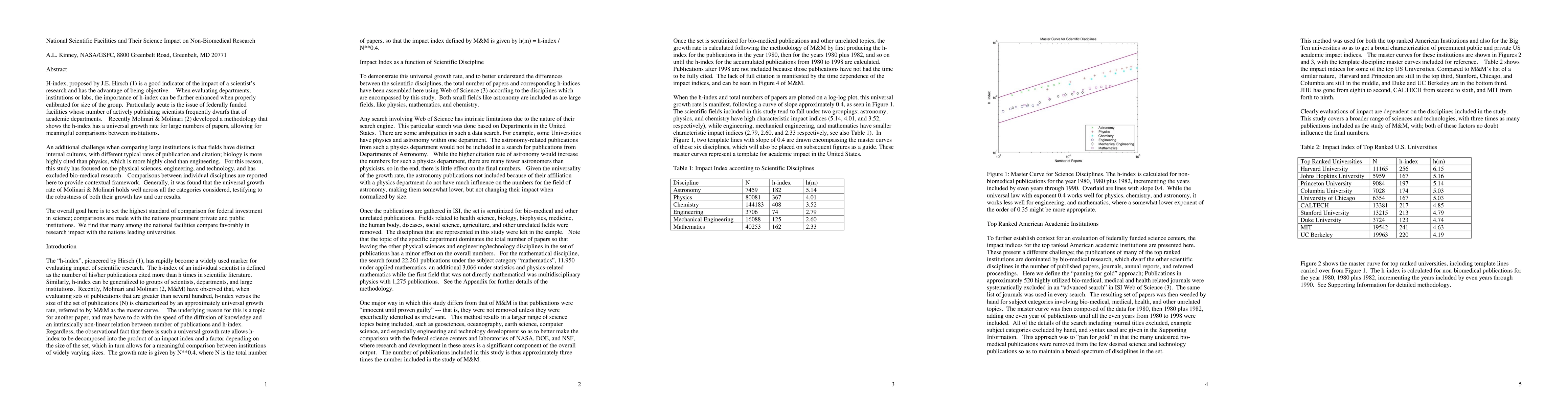 H-index, proposed by Hirsch is a good indicator of the impact of a scientist's research. When evaluating departments, institutions or labs, the importance of h-index can be further enhanced when properly calibrated for size. Particularly acute is the issue of federally funded facilities whose number of actively publishing scientists frequently dwarfs that of academic departments. Recently Molinari and Molinari developed a methodology that shows the h-index has a universal growth rate for large numbers of papers, allowing for meaningful comparisons between institutions. An additional challenge when comparing large institutions is that fields have distinct internal cultures, with different typical rates of publication and citation; biology is more highly cited than physics, which is more highly cited than engineering. For this reason, this study has focused on the physical sciences, engineering, and technology, and has excluded bio-medical research. Comparisons between individual disciplines are reported here to provide contextual framework. Generally, it was found that the universal growth rate of Molinari and Molinari holds well across all the categories considered, testifying to the robustness of both their growth law and our results. The overall goal here is to set the highest standard of comparison for federal investment in science; comparisons are made with the nations preeminent private and public institutions. We find that many among the national facilities compare favorably in research impact with the nations leading universities.