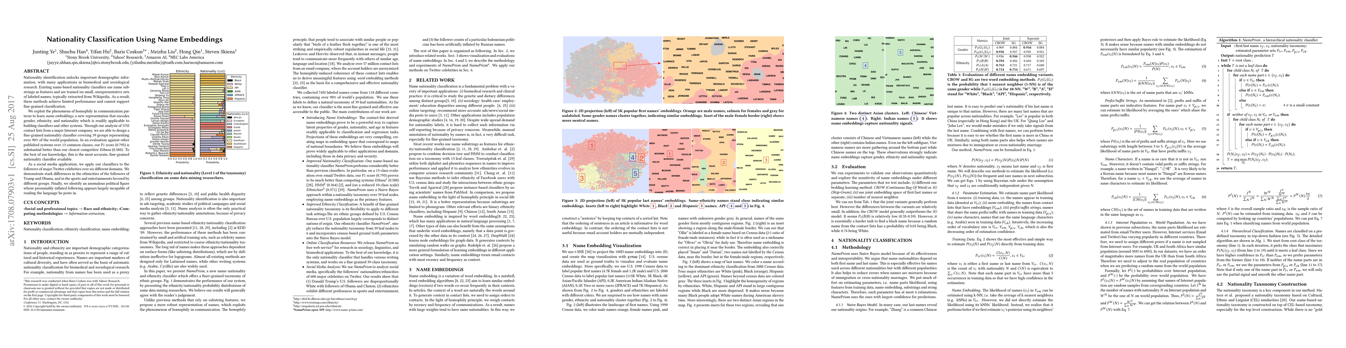 This paper develops a new fine-grained nationality classifier using name embeddings derived from communication patterns, achieving a superior F1 score of 0.795 compared to existing methods. The classifier identifies 39 nationality groups and demonstrates its effectiveness in social media analysis by revealing ethnic differences among Twitter followers of major political figures.