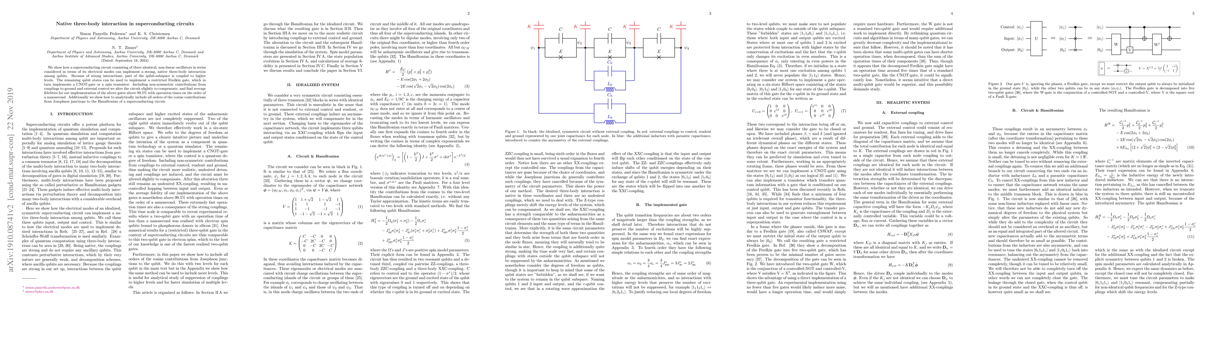 A superconducting circuit consisting of three identical, non-linear oscillators in series was used to demonstrate a native three-body interaction among qubits.